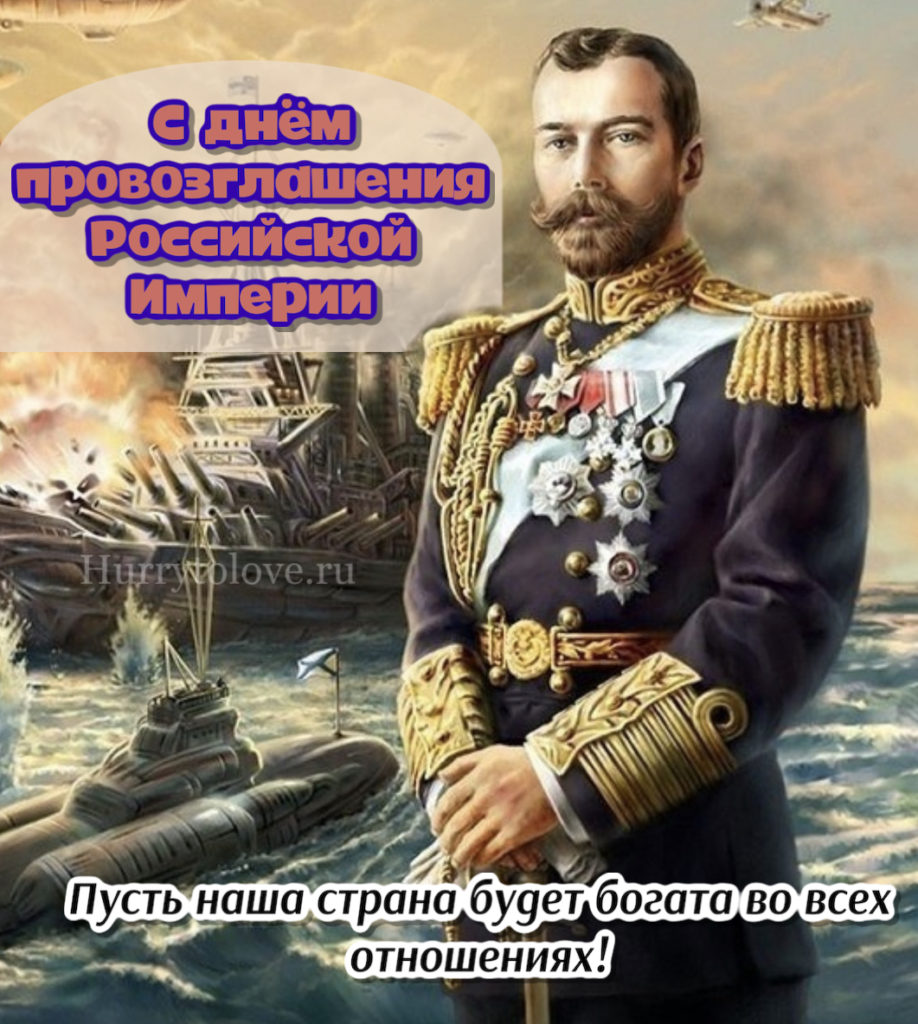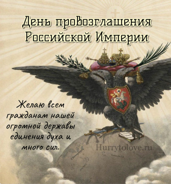 Будем помнить, что день провозглашения Империи стал для России Днем Великой Победы, ведь Российская Империя была провозглашена 21 октября (4 ноября) 1721 года после победоносного окончании долгой и изнурительной Северной войны, когда по прошению сенаторов Пётр I принял титулы Императора Всероссийского и Отца Отечества. Вполне уместно сказать в этот день: спасибо, прапрадеду за Победу!
