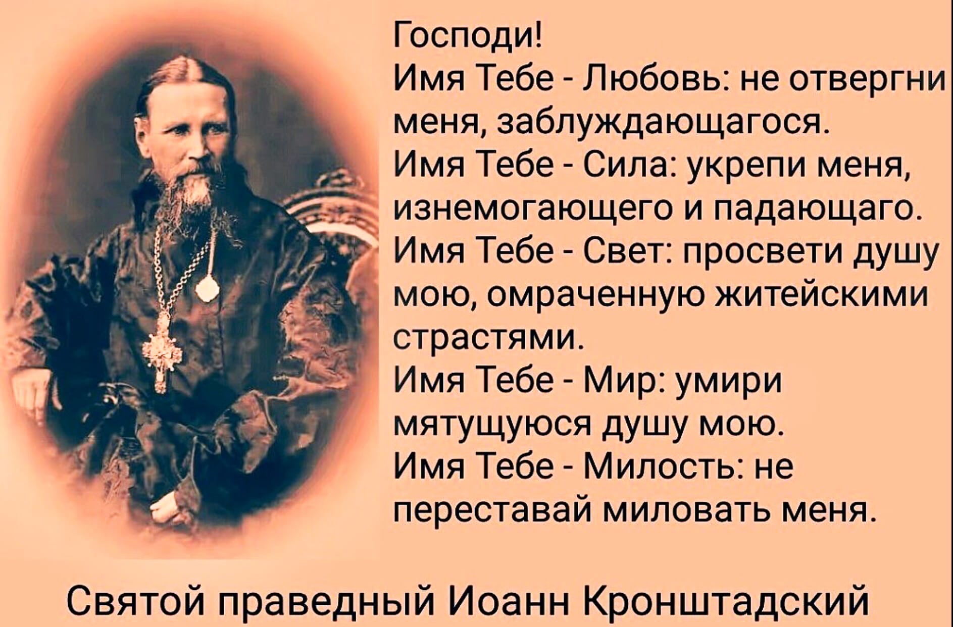 Именно к ним бы в наши дни в первую очередь обратился святой праведный Иоанн Кронштадтский с одним из поразительных по силе молитвенных воззваний о России, которую он называл «подножием Престола Господня», содержится в его книге «Созерцательное подвижничество» (1906-1907): «Отче наш, иже еси на небесех! Да святится Имя Твое в России! Да приидет Царствие Твое в России! Да будет воля Твоя в России! Ты насади в ней веру истинную, животворную! Да будет она царствующею и господствующею в России, а не уравненною е иноверными исповеданиями и неверными. Да не будет сего уравнения с неравными, истинного исповедания не имеющими! Истина не может быть сравнена с ложью и правда веры с неправыми исповеданиями. Истина Господня пребывает вовек (Пс. 116, 2)».