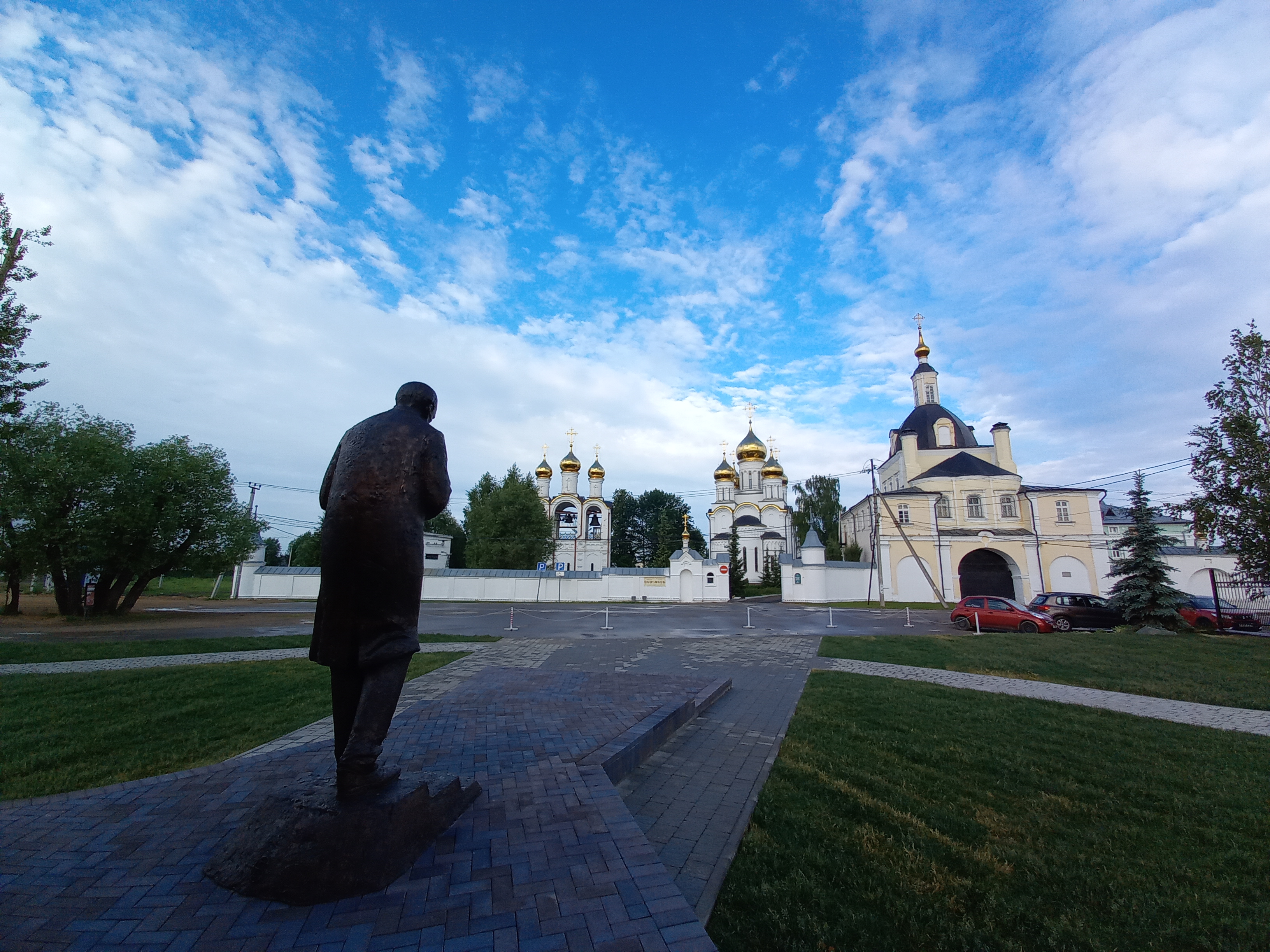 Памятник получился концептуальным. Достоевский, который приходит в обитель, то ли в Оптину, то ли в к старцу Зосиме... Никольский монастырь в Переславле-Залесском, в котором Достоевский вроде бы и не бывал, стал частью памятника писателю.