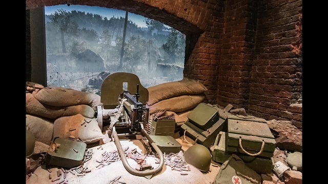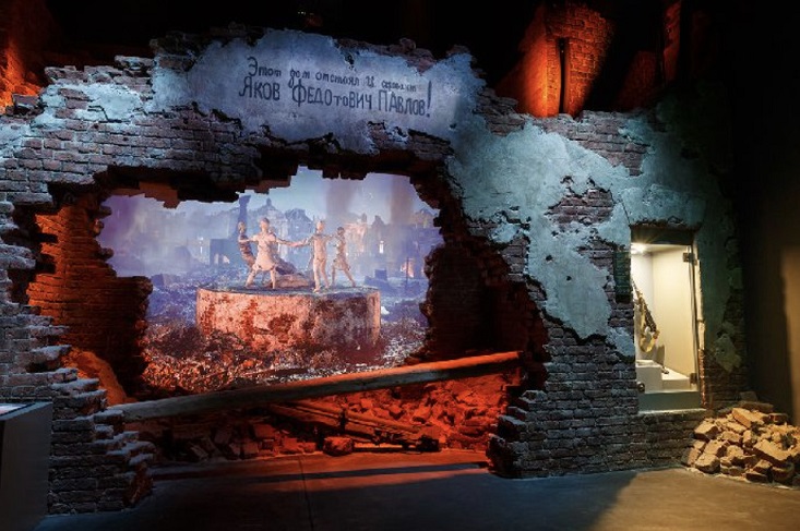 В следующем зале оглушительные звуки от летящих бомб и снарядов. Всё горит. Согласно директиве № 21, известной как «План Барбаросса», окончательно утверждённой 19 декабря 1940 года, немецкие войска вторглись на территорию нашей страны. Намечалось нанести 3 удара – в направлении Ленинграда, Москвы и Киева. Планировалось оставить только 35% населения нашей Родины, а остальных либо уничтожить, либо выселить за Урал.