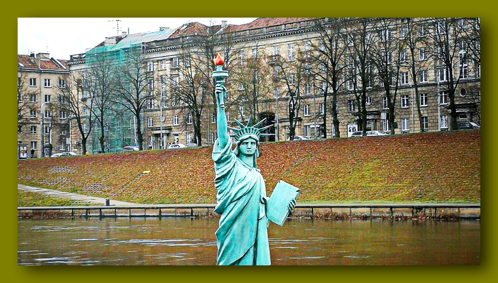 Явно с символическим подтекстом, литовские вассалы США сегодня, в день сноса памятника Пятрасу Цвирке, установили в центральной части реки Нерис (Вилия), напротив центрального универмага Вильнюса, копию американской статуи «Свобода», что стоит на реке Гудзоне, при входе в Нью-Йорк.