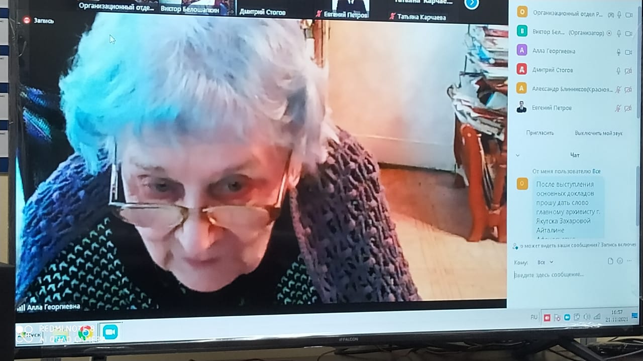 Затем слово было предоставлено главному архивисту г. Якутска Айталине Афанасьевне Захаровой. Докладчица отметила, что в Якутии систематически выходят сборники, посвященные И.И. Крафту. Вклад чиновника в развитие архивного дела был колоссальным. В частности, он образовал Якутскую архивную комиссию. В 1911 г. Иван Иванович писал в своем циркуляре, что окружные архивы находятся в крайне печальном состоянии, зачастую помещаются в амбарах с мукой и солью, поглощаются мышами и расхищаются. Крафт обязал все учреждения направить свои архивы в Якутск, в специальное место в помещении областного управления. Именно эти материалы стали одним из крупнейших и богатейших архивов Сибири. У архивистов, подчеркнула докладчица, особое отношение к Крафту. Это не только выдающийся управленец, организатор, губернатор, он еще и стратегически мыслил, думал. Руководство чиновником было непревзойденным. Сегодня, подчеркнула докладчица, мы участвуем в конференции, посвященной памяти И.И. Крафта, мы чтим его память. Память о Крафте жива, отметила А.А. Захарова. В дальнейшем, по ее словам, будет продолжено изучение и исследование деятельности И.И. Крафта.