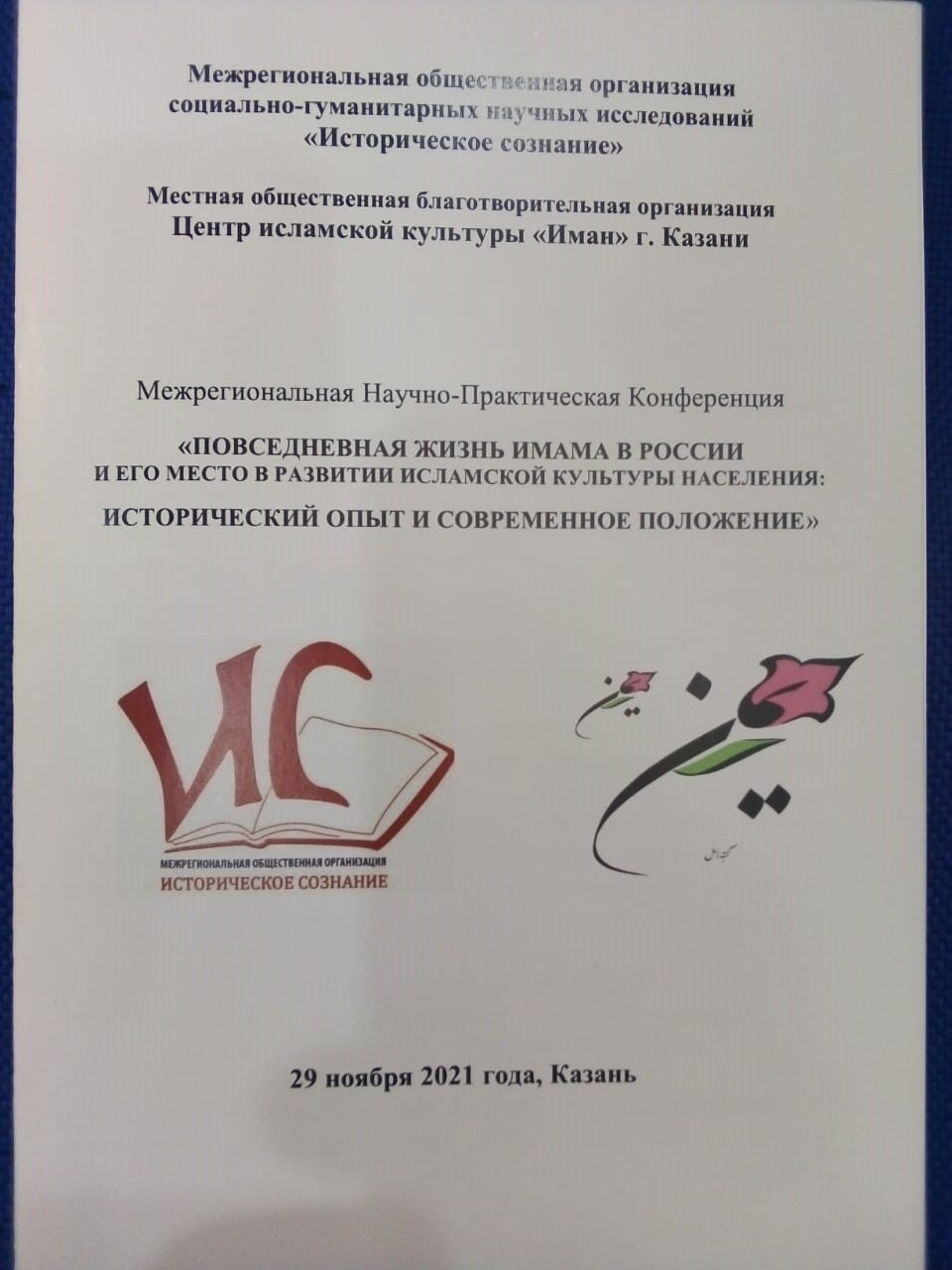 29 ноября 2021 года в Казани прошла Межрегиональная научно-практическая конференция «Повседневная жизнь имама в России и его место в развитии исламской культуры населения: исторический опыт и современное положение», организованная Межрегиональной общественной организацией социально-гуманитарных научных исследований «Историческое сознание» и Центром исламской культуры «Иман».