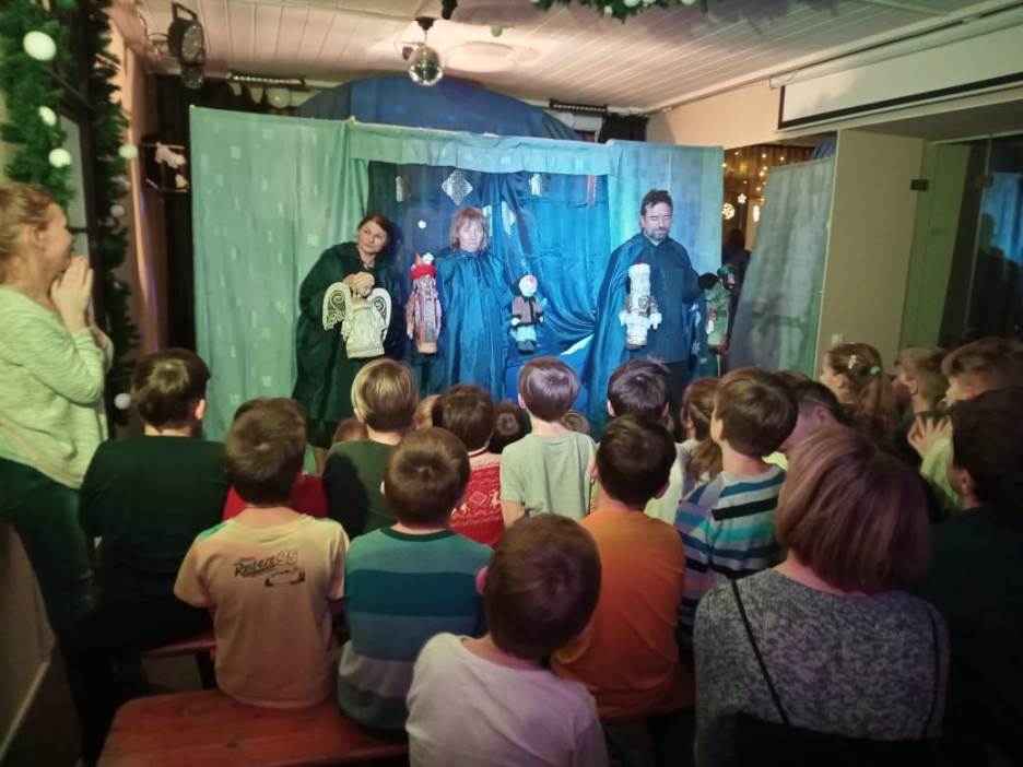 Однако, никто из зрителей не напугался, не убежал. Педагоги центра отметили это. Нам рассказали, что один из маленьких зрителей предыдущий праздник провёл в коридоре, боялся зайти в зал, где была ёлка и дети. На первом спектакле нашего проекта его усадили на стульчик, он не вступал в контакт с другими детьми, сидел рядом с мамой, но смотрел.