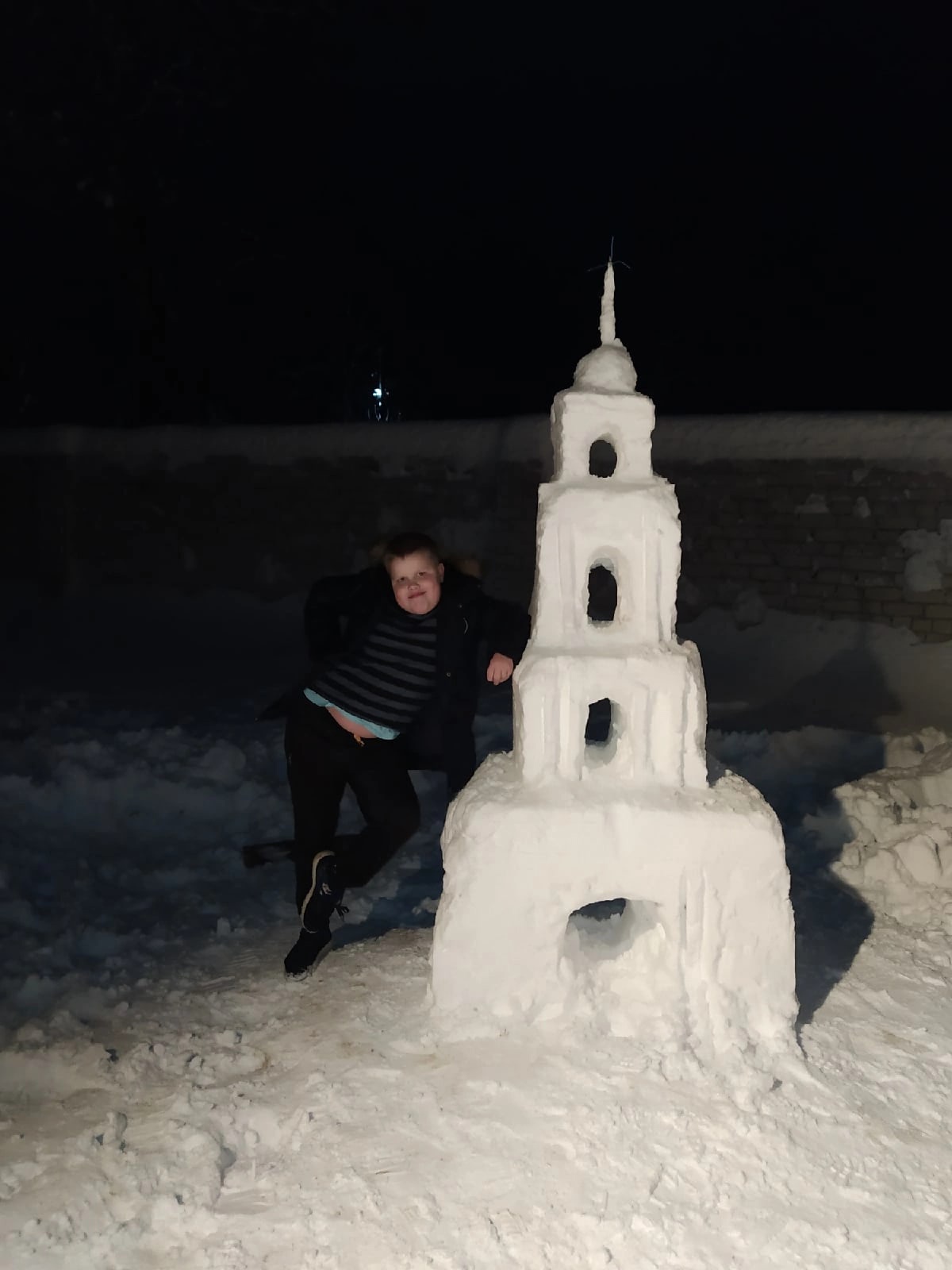 А еще большое событие вдохновило самих калязинцев на такое оригинальное снежное творчество - семья Скалабан смастерила из снега снеговика-колокольню и поделилась фотографиями на своих страничках в социальных сетях! Точная «копия» нашей отреставрированной белой колокольни! Вот такие прекрасные творческие порывы. Молодцы!