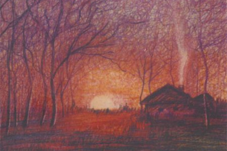 Пейзажи А.Л. Чижевского, написанные по памяти в Караганде (акварель)