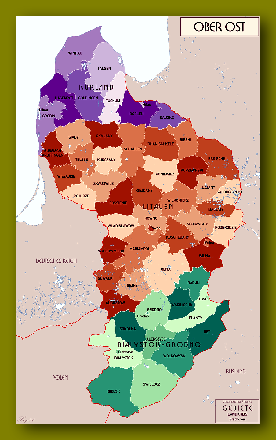 Изначально у немецких военных была геополитическая концепция создать здесь вассальное Германскому рейху Литовское королевство во главе с одним из принцев немецкой имперской фамилии. Начало это идеи можно констатировать с лета 1916 г., когда германский император Вильгельмом II посетил Вильну. Вся дальнейшая недлинная 2-годичная история попытки образования на территории немецкой военной оккупационной администрации Обер Ост Литовского королевства, как мы знаем, провалилась из-за поражения Германского рейха в Первой мировой войне.