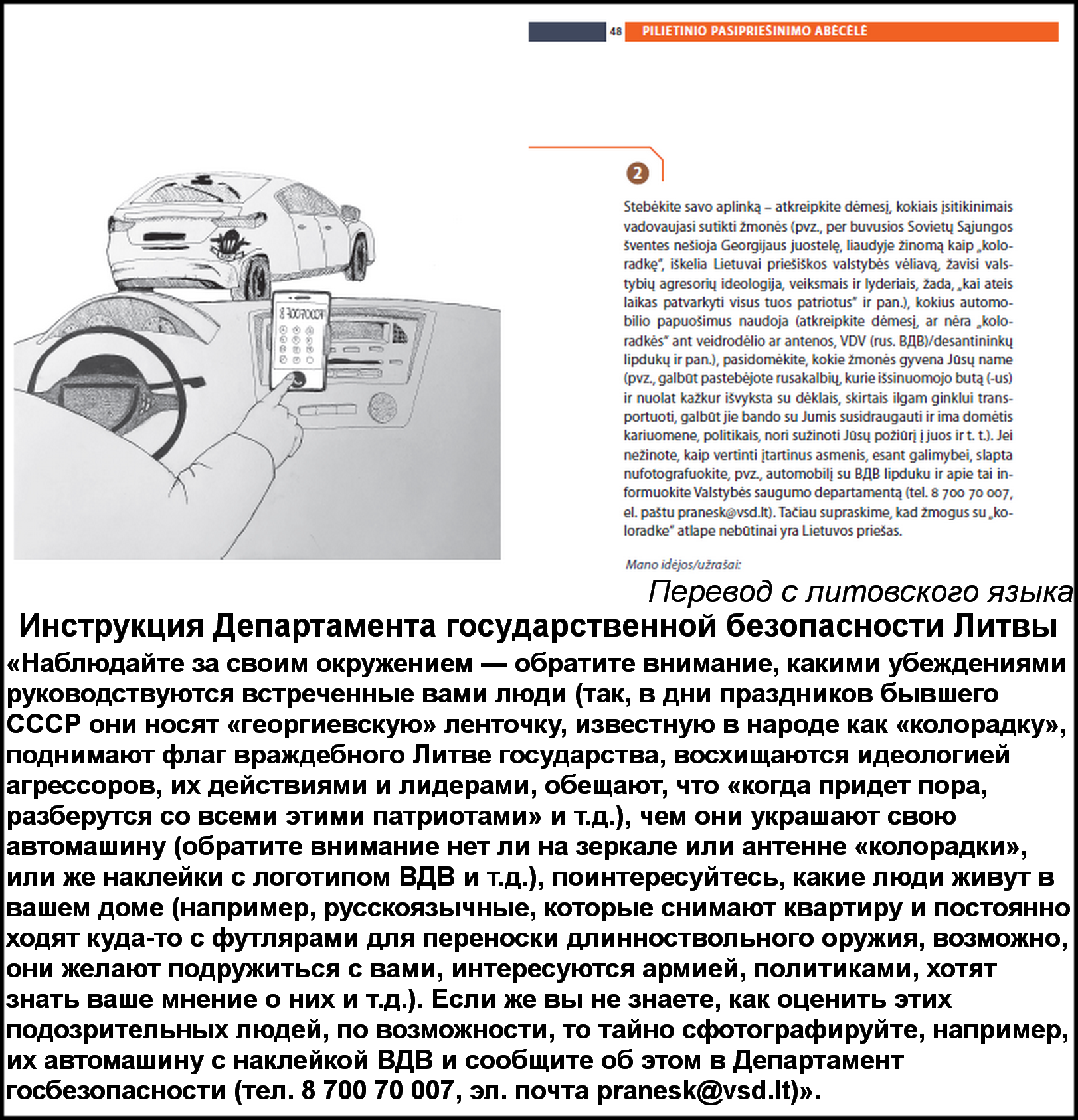 По городу носятся машины с литовским триколором и украинским биколором. В магазинах некоторые продавцы оскорбляют людей, обращающихся к ним по-русски. Департамент государственной безопасности издал инструкцию следующего содержания: