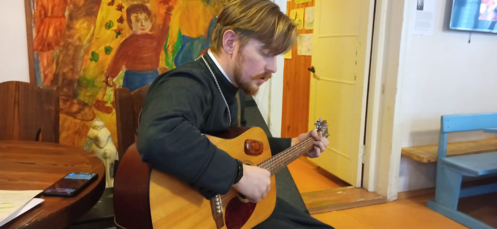 Популярную «Тучи в голубом» (музыка Александра Журбина) подпевал хору иерей Борис Седов, 31-летний клирик храма святых Царственных страстотерпцев, что в Южном Измайлове. Он приехал с драгоценностью – гитарой, которая принадлежала Синявскому, и подыгрывал певчим. Для него Пётр Алексеевич – родной человек с самого младенчества, посвящавший ему песни и прозвавший его в шутку Бобусом-Автобусом. Крошечный Боря не раз сидел на его коленях, бывал в гостях и на концертах. Батюшка делился самыми тёплыми впечатлениями от этих встреч и пел под гитару любимые песни своего Друга – детские и взрослые...