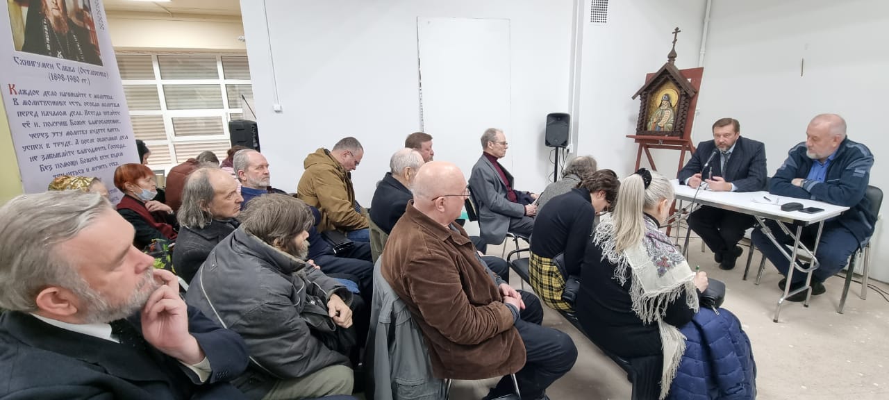 Следом выступил руководитель Общевойсковой православной миссии Александр Чернавский, который приехал в Петербург, сопровождая чудотворную мироточивую икону Царя Николая, которая была доставлена и на выставку, которой были благословлены участники круглого стола. Он подчеркнул главную мысль, что все вопросы в России, судьбы русского народа должны решаться соборно. Мы, все русские люди – в России, на Украине, в Белоруссии – должны решать все вопросы соборно. Соборность – наша сила, соборность – основа нашего менталитета.
