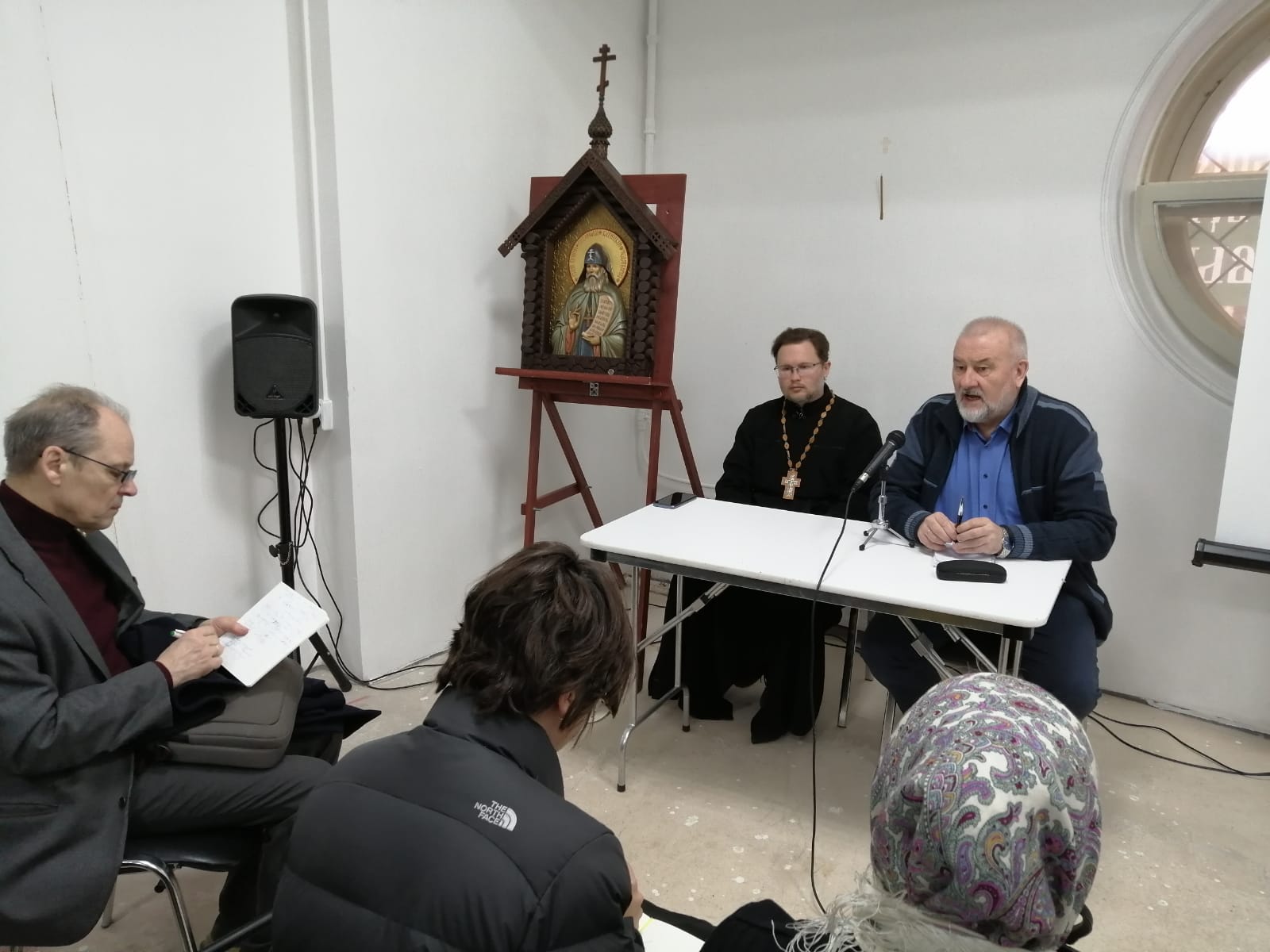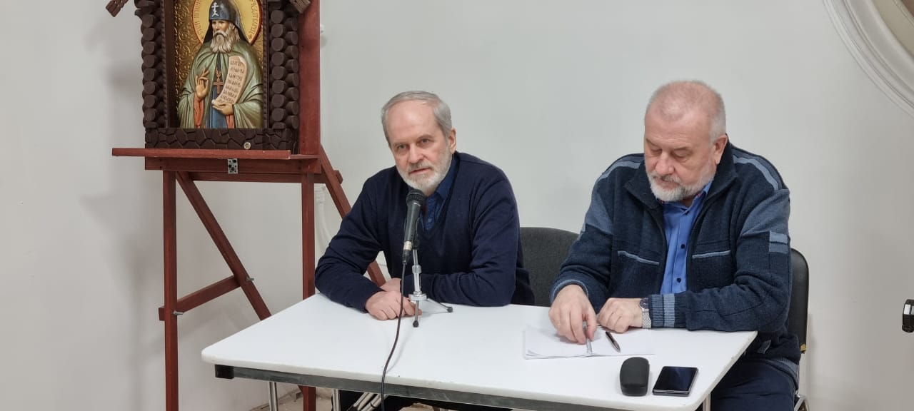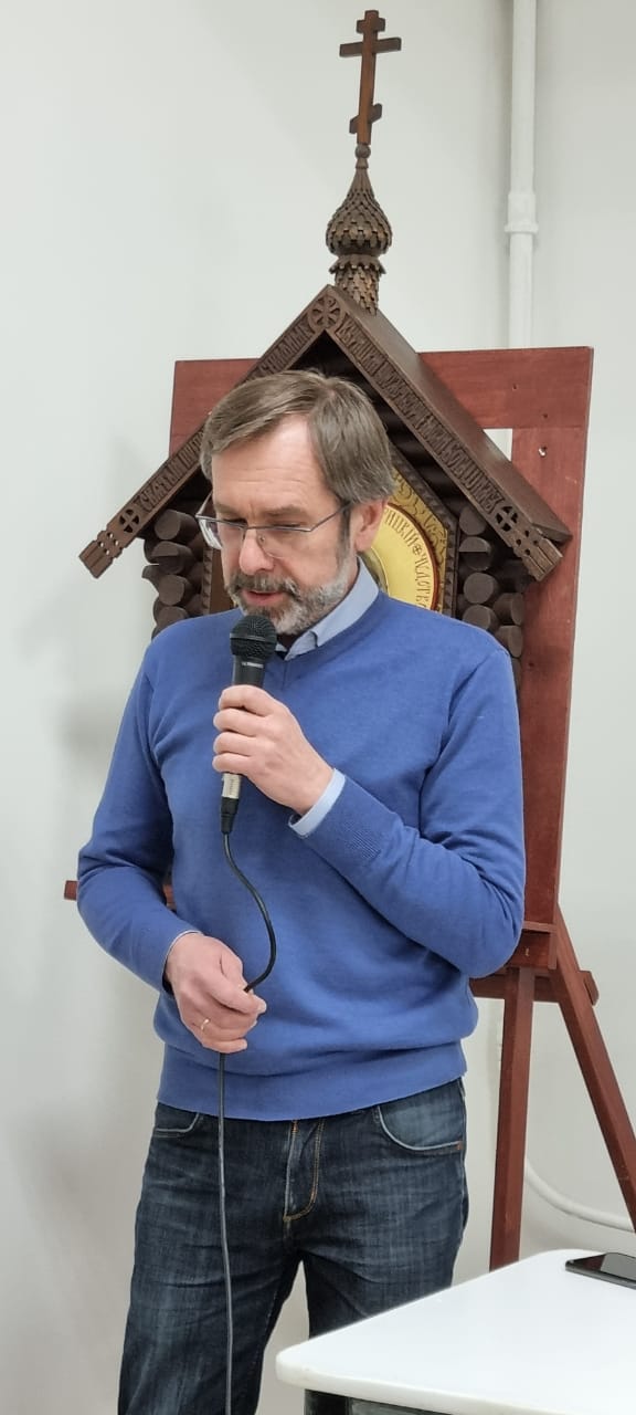 Следом выступил иерей Владислав Авраменко, заместитель председателя епархиального отдела по взаимоотношениям Церкви и общества. Отец Владислав родом с Украины, был там рукоположен и служил, как раз в Сумской епархии, которая ныне является одним из застрельщиков кампании против единства Русской Православной Церкви, против Святейшего Патриарха Кирилла. В своём выступлении он отметил, что мы должны понимать ситуацию на Украине. Там очень сильно влияние унии, даже в восточноукраинских землях. Современные украинцы вообще ориентированы на политику, подчеркнул о. Владислав. Он также отметил ещё одну черту украинцев, в том числе священников, а именно – страх перед властьимущими.