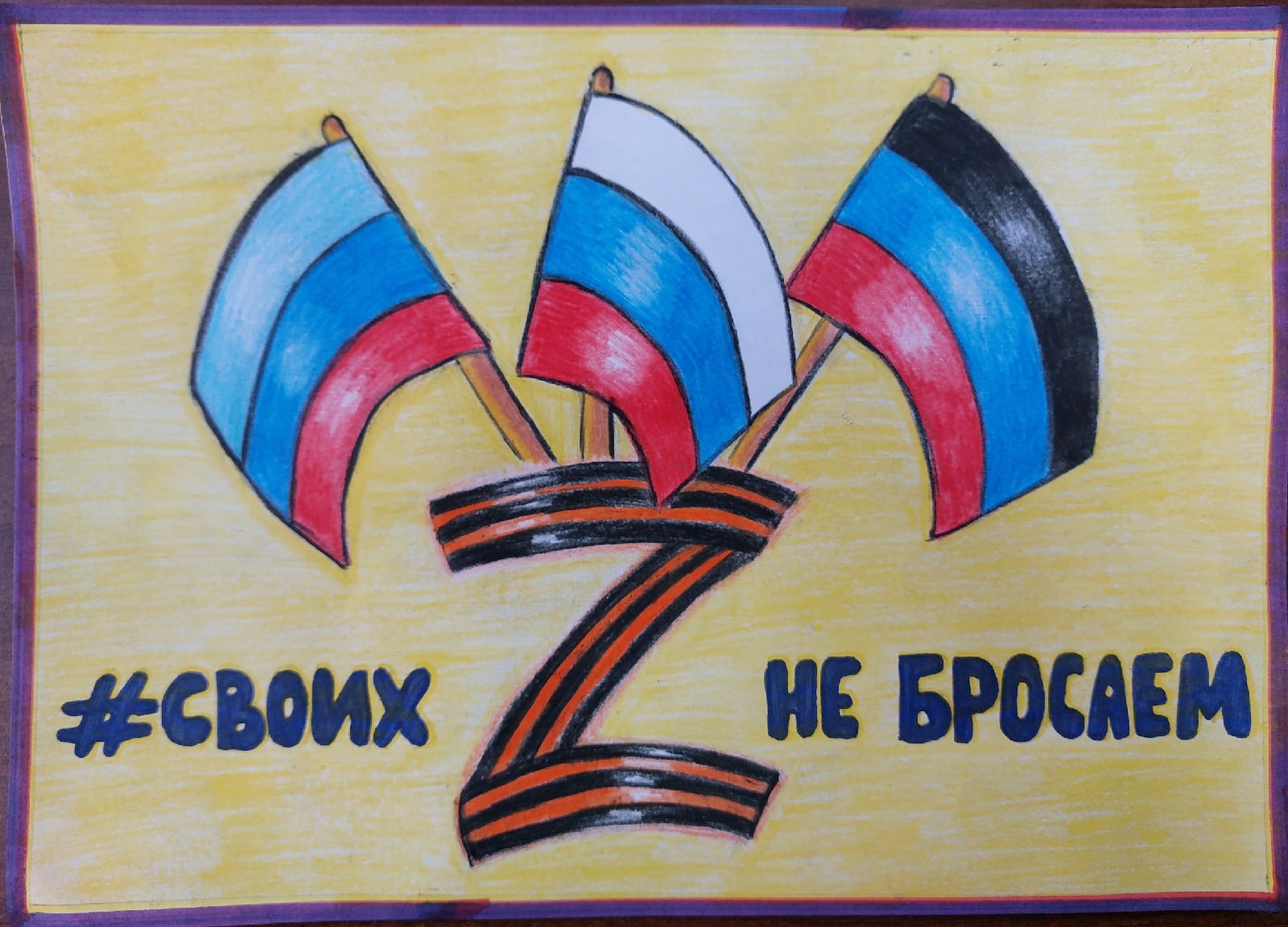 За эти дни на вахту Дома культуры было предоставлено от юных жителей района несколько десятков рисунков. Ребята постарались отразить своё отношение к нашим военнослужащим, на многих рисунках присутствует Георгиевская лента, флаги России, Луганской и Донецкой Народных Республик. Здесь же и символ нашей новой Победы – старенькая бабушка со знаменем Победы в руках, которая не побоялась смело ответить нацистам, топтавшим это Знамя. Всех участников акции обязательно наградят памятными дипломами. Работы можно будет увидеть в фойе Дома культуры с 25 апреля по 10 мая 2022 года, а также в специальном альбоме в группе РДК в социальной сети ВКонтакте.