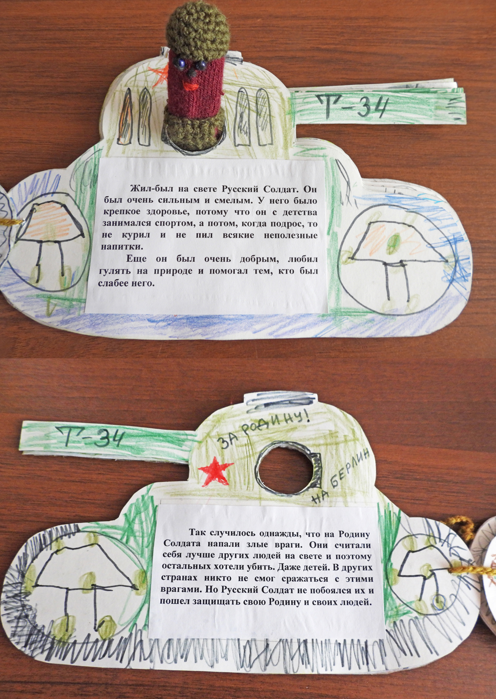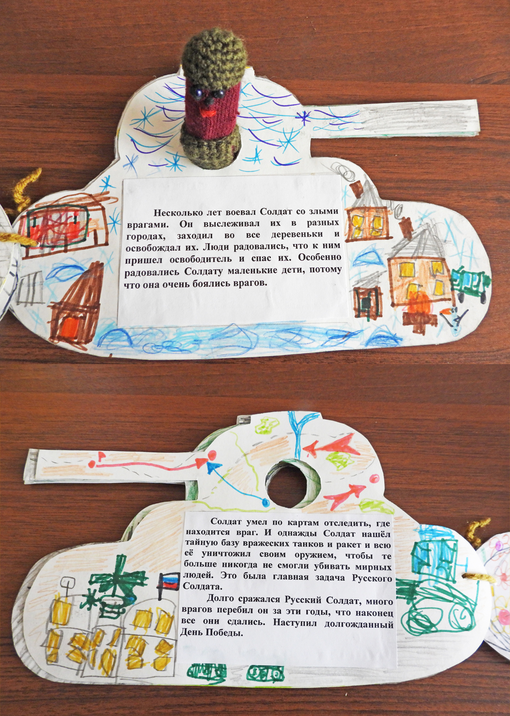 В детских садах Калязина в эти дни прошел конкурс на лучшую авторскую сказку и её оформление. Решили поучаствовать в конкурсе и мы с сыном Иваном. Ну о чем могла быть наша сказка в такое время?! Когда по телевизору сюжеты и разговоры про военных и Армию, когда сын целыми днями рисует танки и солдатиков… Только о Русском Солдате. Так и назвали нашу книжку-театр – «Русский Солдат», в которой рисунки и общее оформление Ивана. Предлагаем к прочтению и вам!