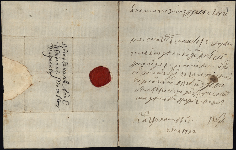 Посетители выставки могут ознакомиться с письмами Петра I своим дочерям — цесаревнам Анне и Елизавете, в которых ярко выражены отцовская нежность и любовь.