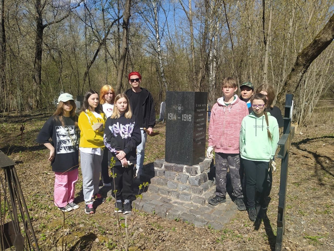 После «урока мужества» был убран мусор и засохшие цветы у саркофага героя Отечественной войны 1812 года Н. А.Теплова, затем участники субботника направились в другой конец старинного некрополя, где провели уборку у другого памятника, но уже посвященного Первой мировой войне. Он находится рядом с местом погребения георгиевского кавалера Г. О.Гакена, погибшего в 1914 году.