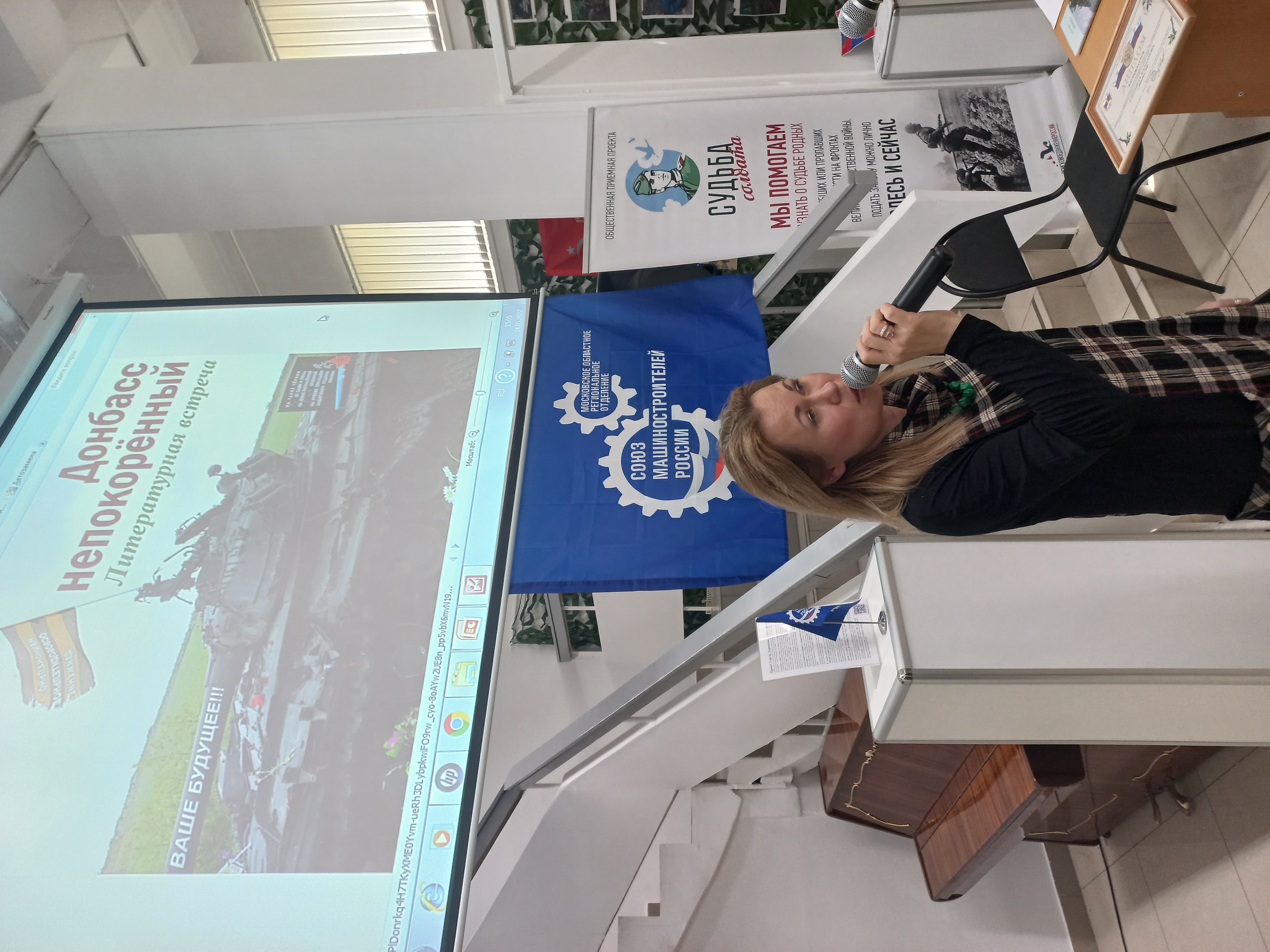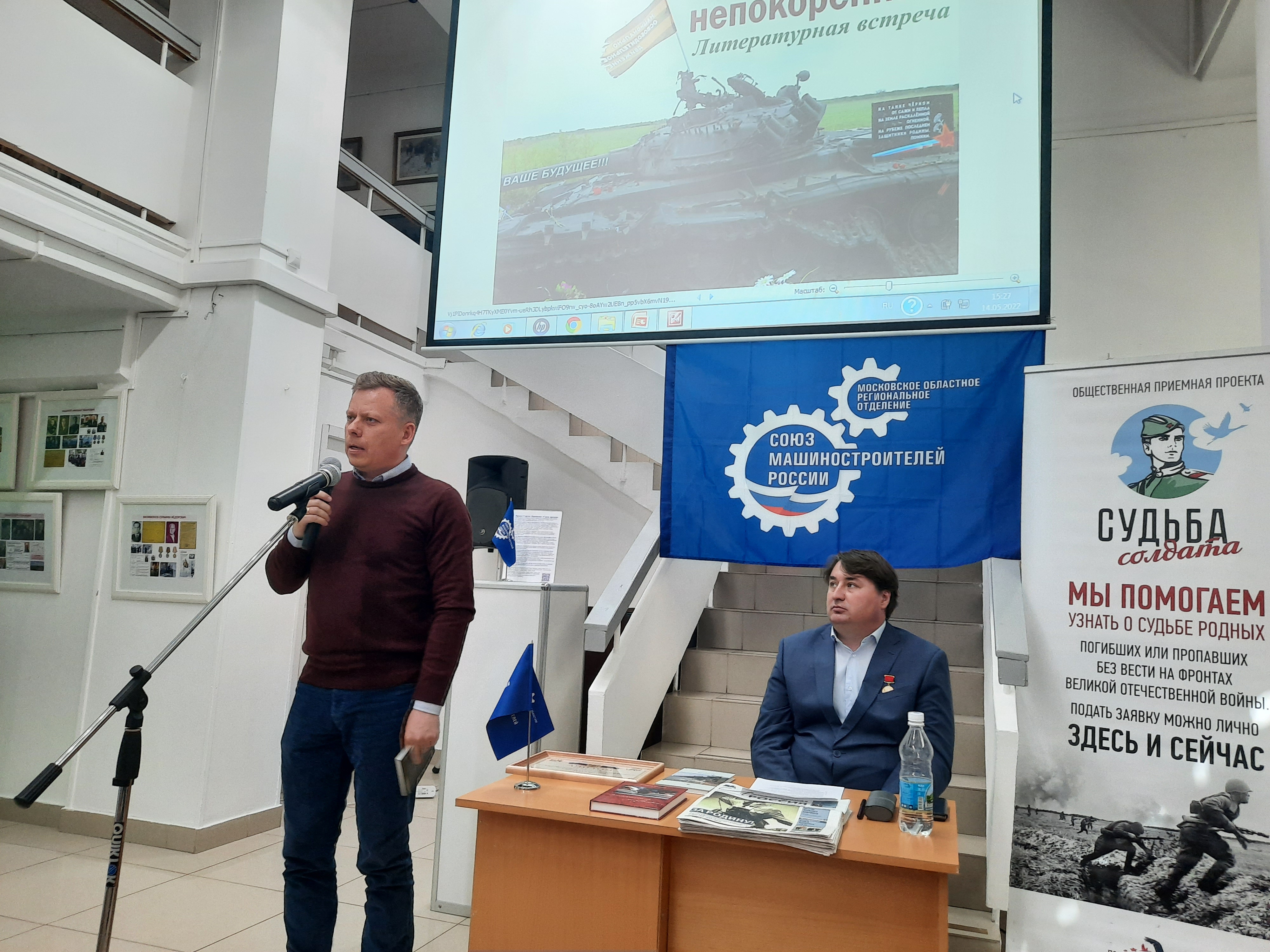14 мая в Музейно-выставочном центре города Реутова прошла литературно-музыкальная встреча «Донбасс непокорённый», организованная Союзом писателей России совместно с Московским областным отделением Союза машиностроителей России. Встреча прошла в рамках одноимённой фотовыставки писателя, журналиста и волонтёра, секретаря правления Союза писателей России Алексея Полуботы, который был ведущим мероприятия.