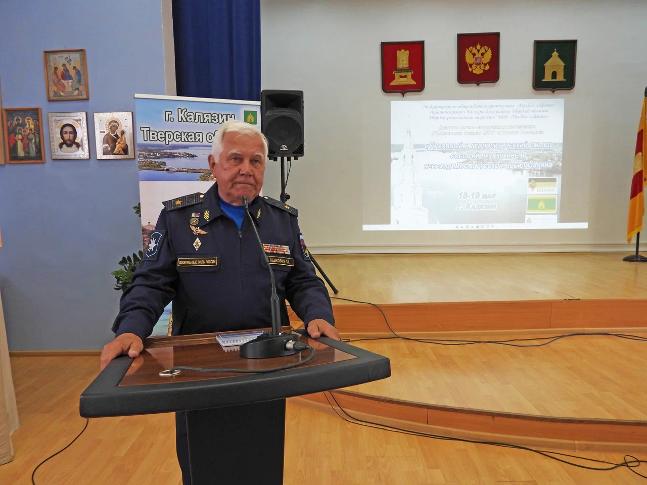 Генрих Иванович Левкович, заслуженный военный лётчик РФ, генерал-майор авиации России, Почётный гражданин г. Твери, Председатель Тверской городской общественной организации ветеранов войны, труда, вооружённых сил и правоохранительных органов, поделился с присутствующими данными о современном состоянии Российской Армии и перспективах её развития. Он отметил, что она боеспособна, промышленностью производится достаточно необходимого для её вооружения и оснащения. У нас много высокоточного оружия, но в данной операции мы действуем ограниченным контингентом, достигая своих задач щадящими методами. Руководством делаются выводы по текущей ситуации, учитываются и исправляются недочеты.