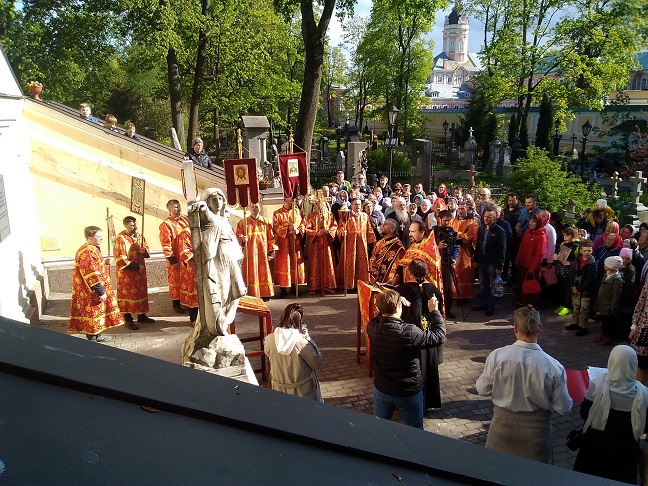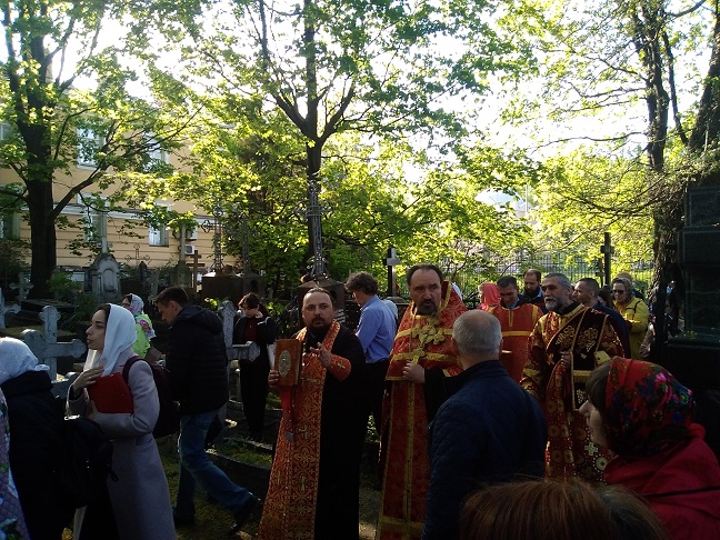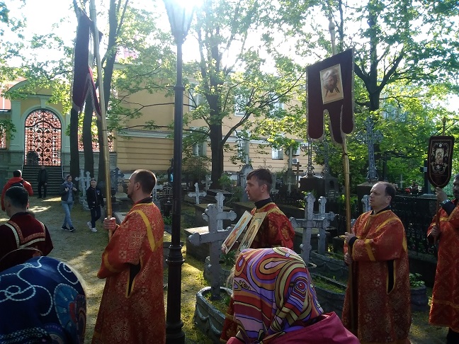 После молебна состоялся крестный ход с иконой «Неупиваемая Чаша» по территории Никольского кладбища Александро-Невской лавры. В молитвенном шествии приняли участие несколько сотен человек. Участники крестного хода двинулись к могиле священника храма Воскресения Христова у Варшавского вокзала священника Александра Васильевича Рождественского (1872–1905), который в самом конце XIX столетия положил начало делу православной трезвости в Санкт-Петербурге, основав знаменитое впоследствии на всю страну Александро-Невское общество трезвости. Отцу Александру пропели «Вечную память».