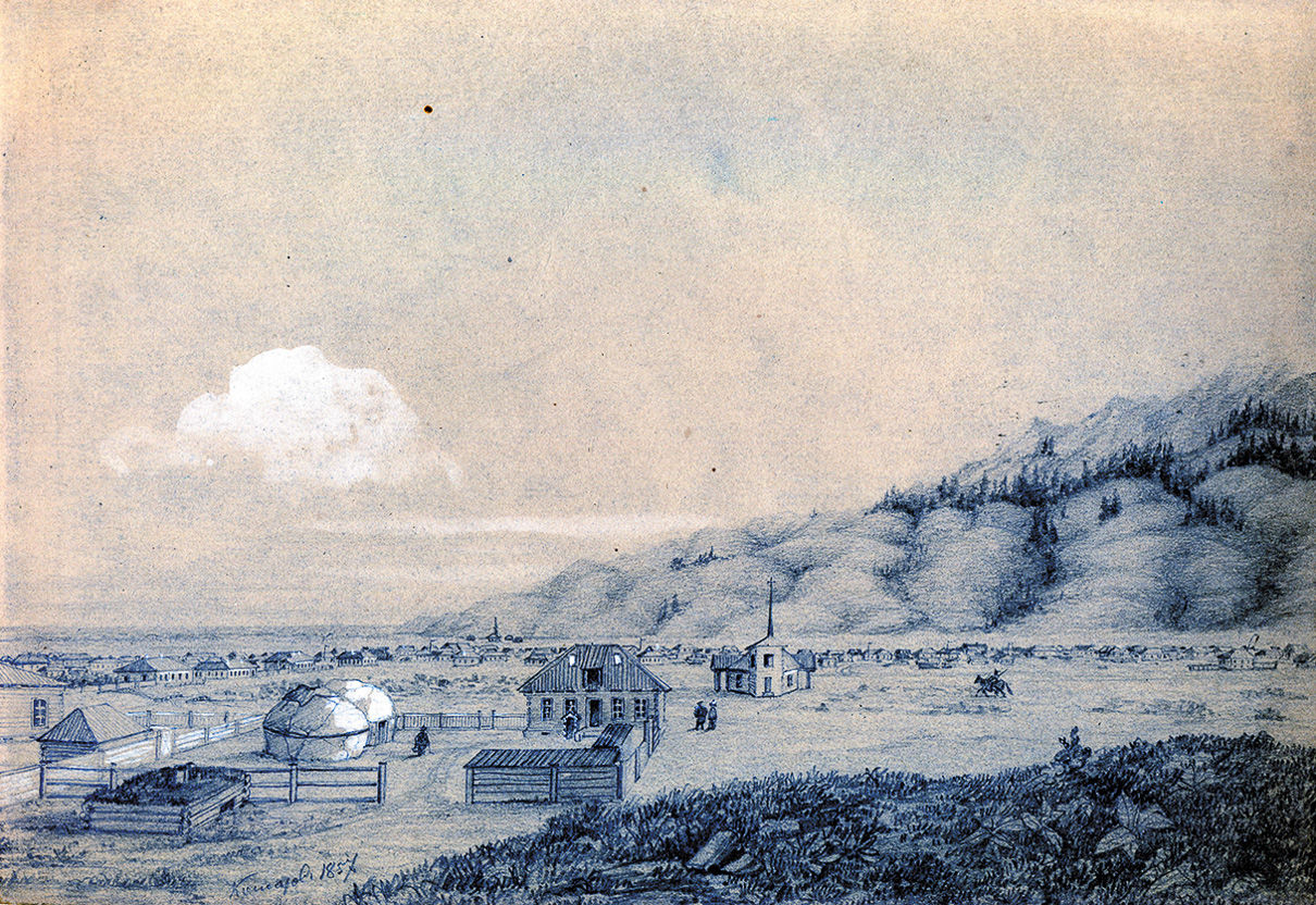 Верненское укрепление. Рисунок П.Кошарова, 1857