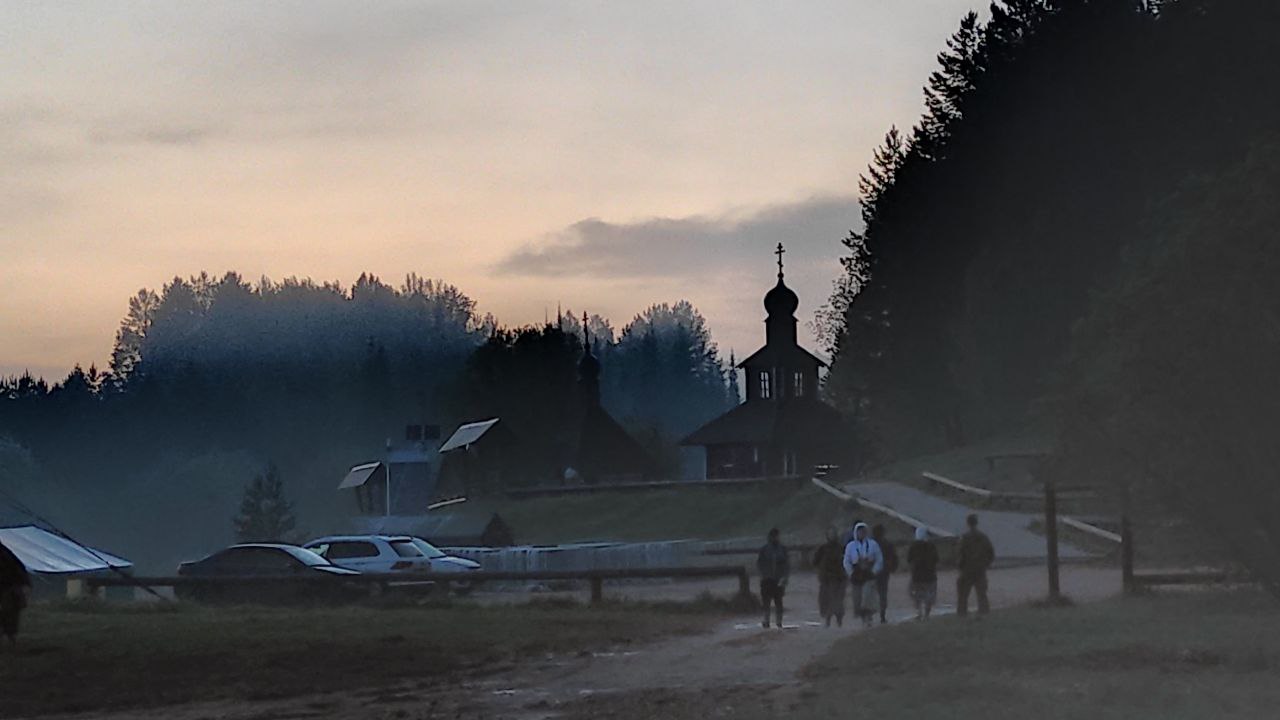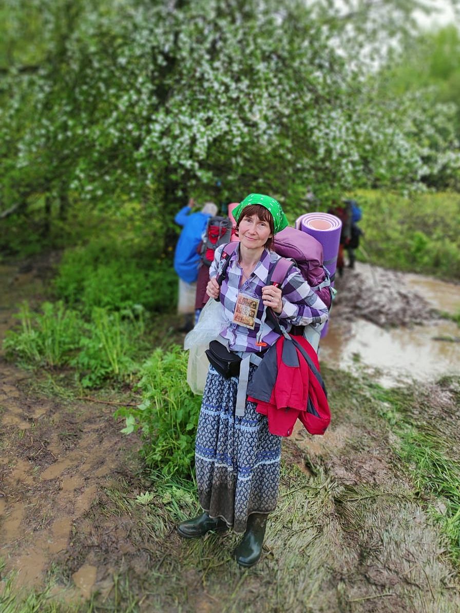 Думаю, не мне одной шагающая в грязи колонна крестного хода с рюкзаками и пенками под пленками и дождевыми накидками напоминает солдат-пехотинцев на марше. На одной из переправ через вздувшиеся от ливней речки, когда женщины пошли вброд по колено в холодной воде, вспомнился рассказ мамы о бабушке, работавшей во время войны на сплаве леса по Пинеге. Как та вылавливала плывущие бревна, стоя по пояс в ледяной воде, и длилось это не день, а несколько лет.