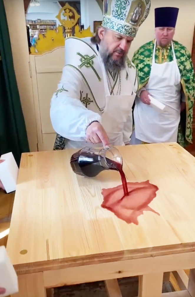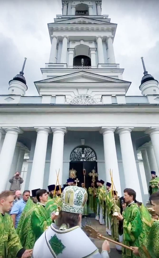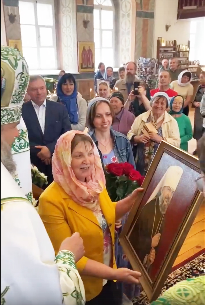 В этот же день Владыка Амвросий отмечал свой день рождения. Его поздравили глава района Константин Ильин, благочинный Калязинского округа о. Георгий, прихожане храма и другие гости. В дар митрополиту от Калязина были преподнесены картины: одна с изображением колокольни Николаевского собора известного калязинского мастера Михаила Стоячко и портрет владыки, выполненный молодой калязинской художницей Анастасией Паниной.