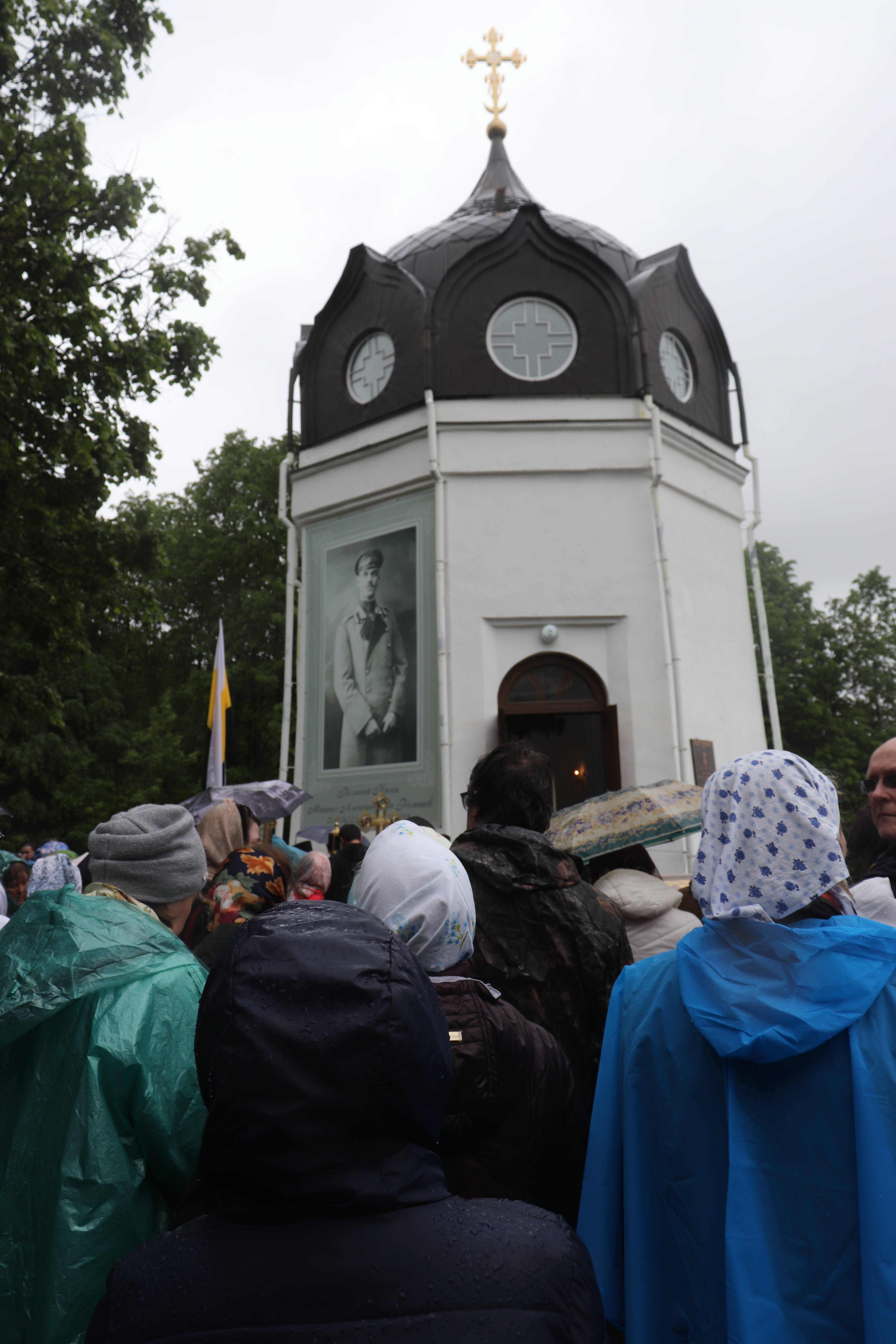 Крестоходцев собралось немного. Под звон колоколов из храма вынесли иконы Великой княгини Елизаветы Фёдоровны Романовой, посещавшей эти места, и Великого князя Михаила Александровича Романова. Великий князь Михаил был прославлен в лике новомучеников и исповедников Российских в ноябре 1981 года в Нью-Йорке Архиерейским Собором Русской Православной Церкви Зарубежом. И организаторы Крестного хода дерзнули взять на Крестный ход этот образ. Небольшие бумажные иконы Великого князя можно было купить в церковной лавке.