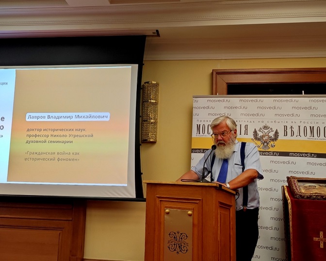Доктор исторических наук, профессор Николо-Угрешской духовной семинарии Владимир Михайлович Лавров выступил с докладом на тему «Белое движение в России и Приамурский Земский Собор». Учёный говорил, главным образом, о причинах гражданской войны.