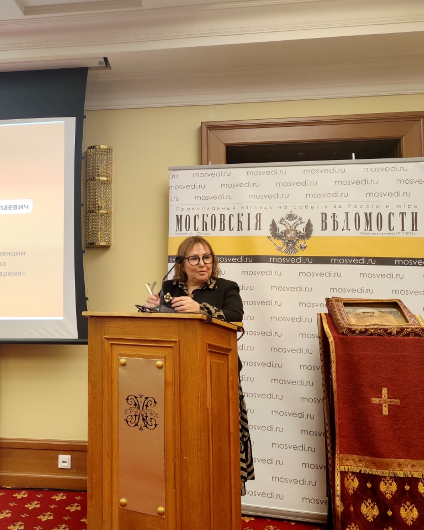 Председатель правления Фонда Патриарха Гермогена и Женского патриотического общества, Президент Фонда развития художественной промышленности и ювелирного искусства, кандидат исторических наук Галина Васильевна Ананьина предложила собравшимся доклад на тему «Благословение Державной иконой Божьей Матери Приамурского Земского Собора». Докладчица рассказала о почитании Державной иконы во времена проведения собора.