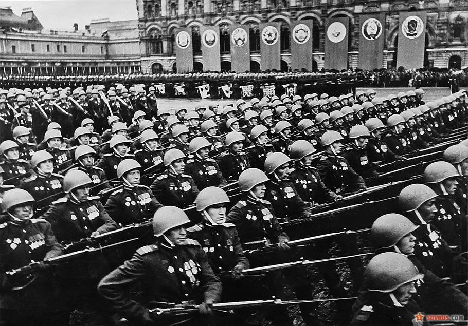 Затем И.В. Сталин спросил: «Не следует ли нам в ознаменование победы над фашистской Германией провести в Москве Парад Победы и пригласить наиболее отличившихся героев – солдат, сержантов, старшин, офицеров и генералов?»