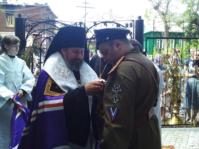 В завершение, епископ Стефан вручил благотворителям памятные кресты с образом Государя Николая Второго, изготовленные тщанием Общественной организации «Союз Городов Воинской Славы».