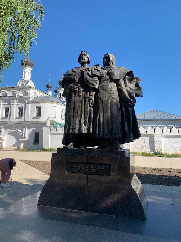 Муром. Памятник святым Петру и Февронии между мужским Благовещенским и женским Свято-Троицким монастырями