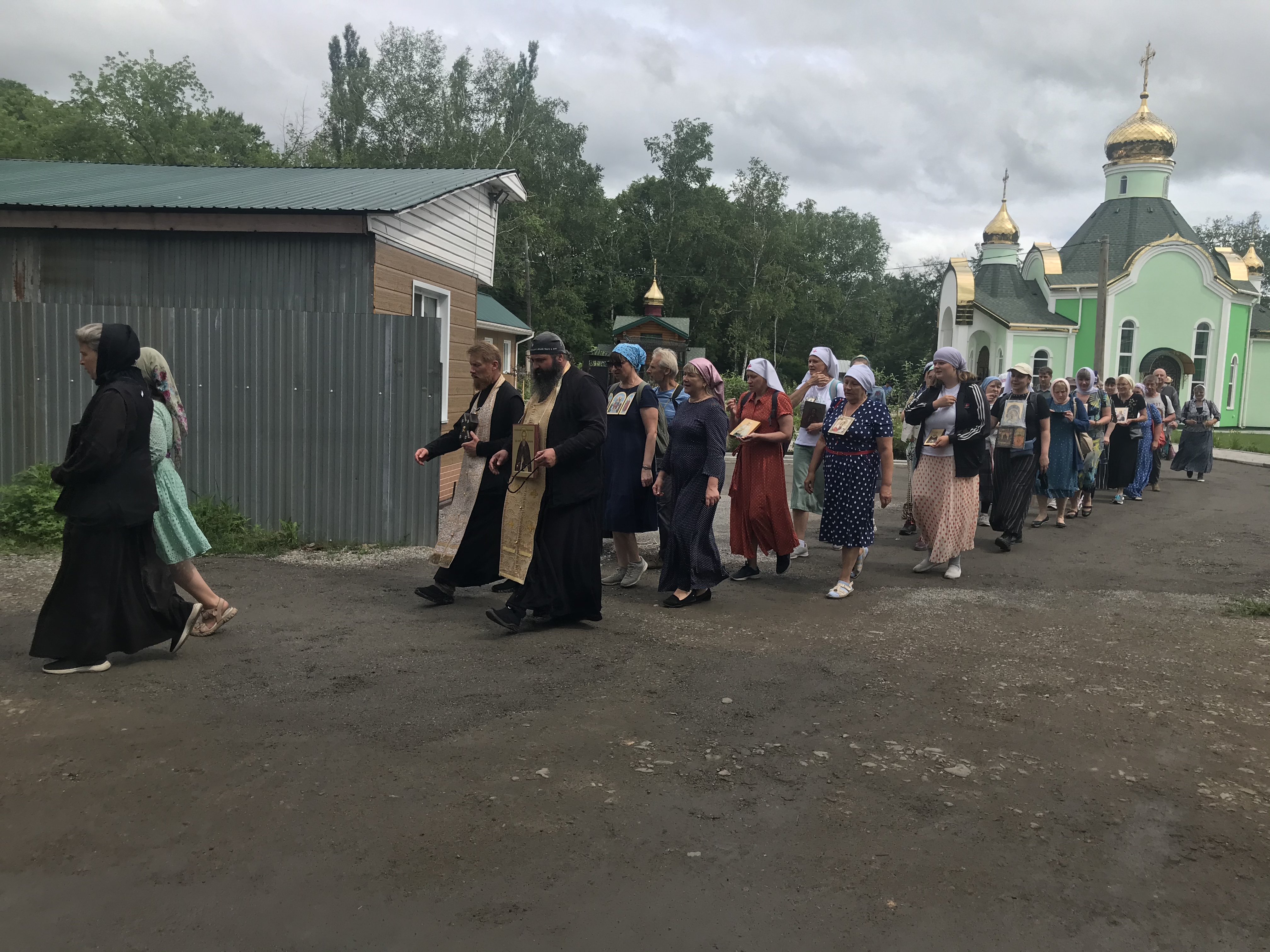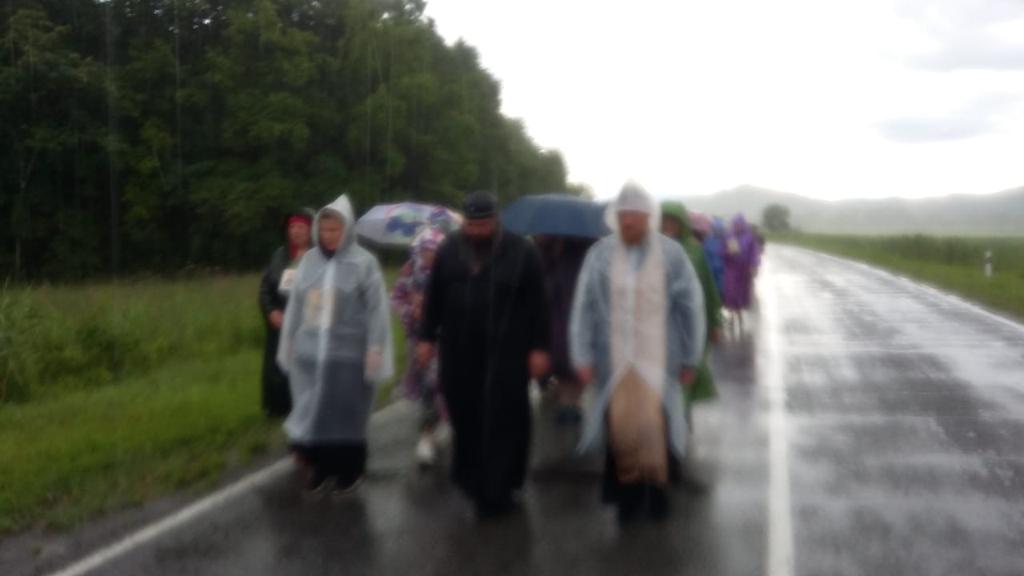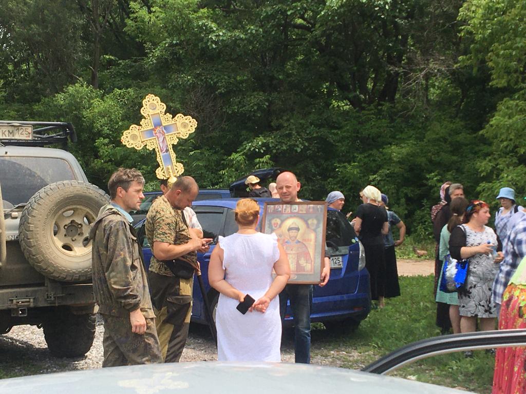 Дорога не близкая. От одной церкви до другой более полсотни человек из Находки, села Екатериновки, других близлежащих населённых пунктов должны были преодолеть аккурат сорок километров. Вот уже вышли за пределы городской черты, и Крестный ход радостно встретили прихожане храма Живоначальной Троицы посёлка Врангель во главе с его настоятелем, иереем Георгием Москаленко. Вот уже преодолено десять... пятнадцать километров, и на пути домовый храм святых мучеников Флора и Лавра села Фроловки. Отдых, где ждала снова трапеза: щи, домашний варёный картофель, огурцы домашние, морс и чай. И снова вперёд. И снова верста за верстой. Дорога иногда с затяжными подъёмами. Час за часом, шаг за шагом народ с молитвой на устах шёл в гости к Преподобному Сергию, чтобы на следующий день помолится соборно на архиерейской Литургии, которую 18 июля возглавил епископ Находкинской и Преображенский Николай.
