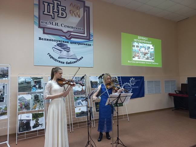 На открытии фотовыставки выступили представители городской администрации Великих Лук, музыканты, общественные деятели. Стоит отметить, что ведущая Алёна Эйсмант и другие сотрудники библиотеки с большим вниманием отнеслись к организации встречи. Прологом стала музыкальная композиция «Белый ворон» композитора Илона Эшкери, исполненная солисткой филармонии Детской школы искусств «Центр» Варварой Фёдоровой и её ученицей Прасковьей Новиковой. Тревожная и одновременно жизнеутверждающая музыка настраивала собравшихся на серьёзный лад.
