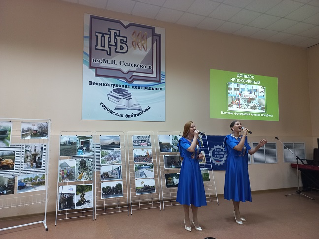 Встречу украсили выступления солисток вокального ансамбля «Традиция» Анастасии Куряковой и Маргариты Рассадовской, прекрасно исполнявших лирические песни на военную тему. Официальная часть открытия выставки закончилась, а зрители, в том числе совсем молодые ребята из Великолукской государственной сельскохозяйственной академии ещё долго оставались в зале, рассматривая фотографии и обсуждая услышанное и увиденное.