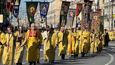 После Божественной литургии состоялся крестный ход по Невскому проспекту с Казанской иконой Божией Матери. В нем участвовали священнослужители митрополии, представители приходов города, области и других регионов, общественных организаций, братств, учащиеся духовных школ, горожане.