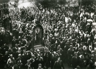 Из Казанского собора был вынесен чудотворный образ – Казанская икона Божией Матери. Далее крестный ход двинулся по Невскому проспекту и Морской улице (ныне Большая Морская улица) к Исаакиевскому собору, исполняя церковные песнопения.