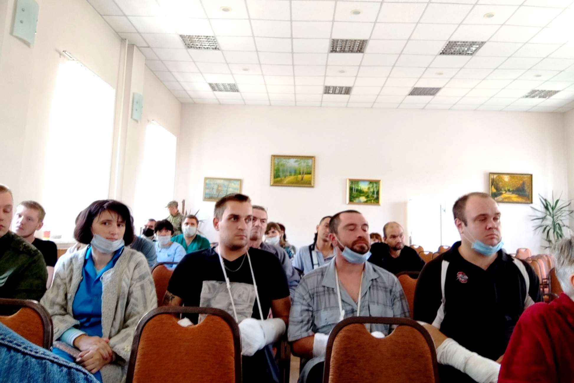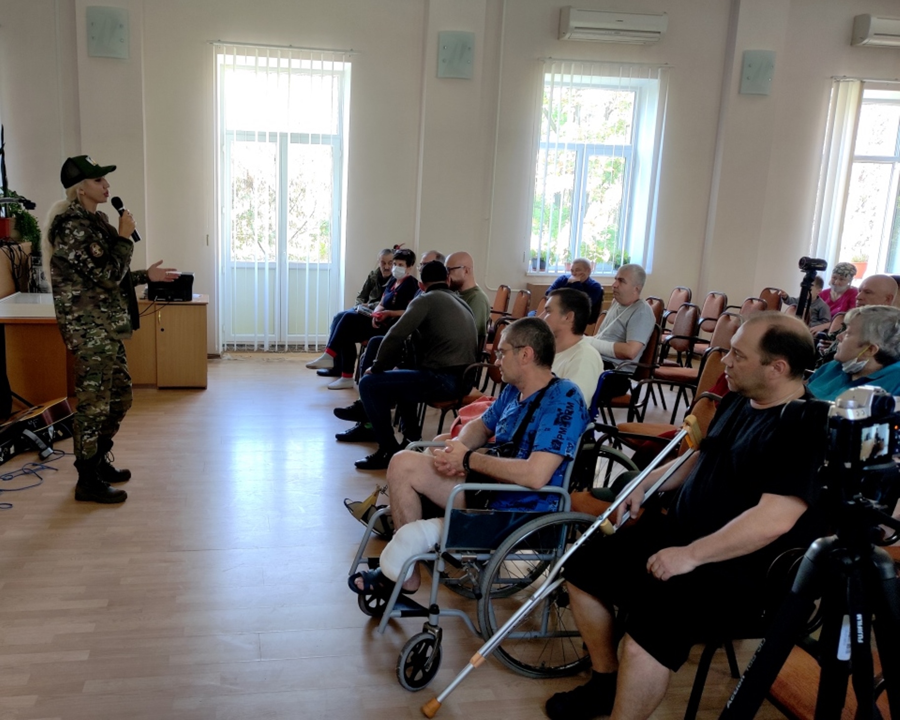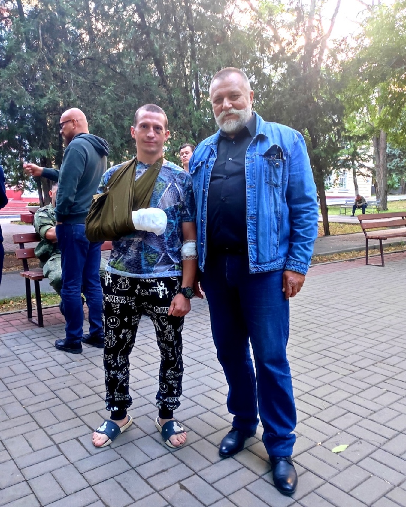 Опять встречи с бойцами, с раненными и врачами. Так же, как и в Ростове, госпиталь производит тяжелейшее впечатление. Страдания молодых и уже пожилых солдат и офицеров рвут сердце, но просто невозможно смотреть на покалеченных женщин. А встречно и утешение нам, от них нам! – «Спасибо, Россия. Вместе мы теперь победим».