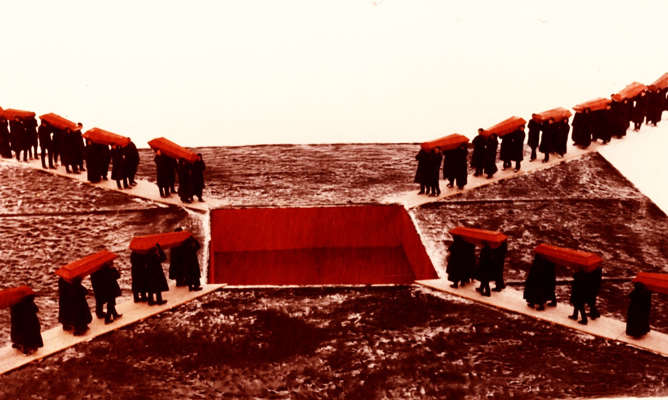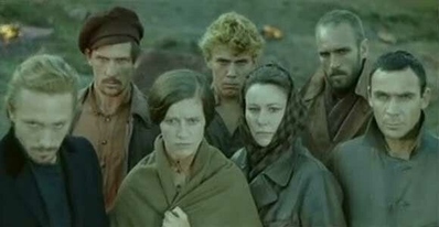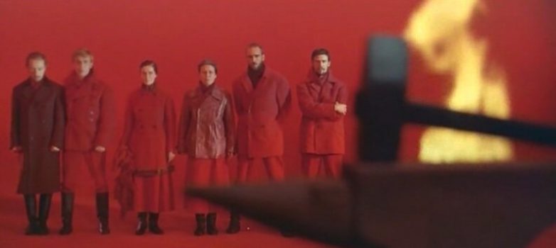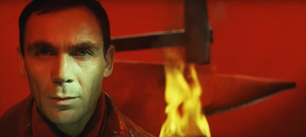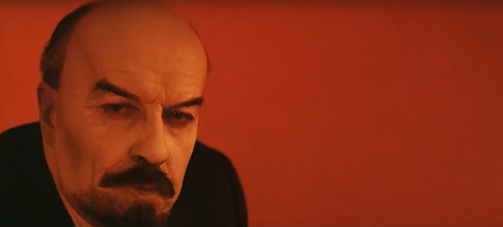 Знаменательны первые кадры фильма. Перед нами предстают как бы люди-памятники, люди-символы, люди, замершие в граните и мраморе. «Первороссияне» – это совсем не отсюда. Это, если хотите – кремнеорганика, это – Египет. На экране, перед глазами зрителя предстают как бы ожившие изваяния ушедшей цивилизации. «Каменные гости» обретают жизнь. Очень странные аллюзии возникают уже в главе Первой «Клятва», в сцене погребения, когда товарищи по борьбе хоронят своих собратьев. Но, полно, собратьев ли хоронят эти люди в чёрном?.. Сходящаяся Андреевским крестом к красному квадрату (как к жерлу Молоха) процессия, не дореволюционную ли Россию она хоронит?.. И не в знак ли отречения от принесённой Апостолом Андреем веры попирается ими Андреевский Крест?.. В жертву Молоху приносится вся Россия. Как та, что была до 1917 года, так и появившаяся после. А потому, через весь фильм остинантно – «фунебре», как главная партия, проходит похоронная тема. Нет, здесь ни намека на экзистенцию или же подражание Западу. Нет здесь и амбициозности в выражении своего лишь авторского гения. Здесь глубинная боль за погубленную Русскую цивилизацию.