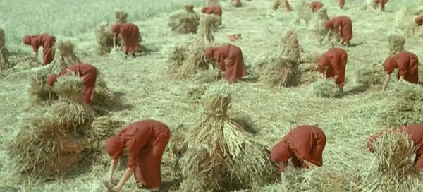 От лицезрения сцены пахоты возникают странные смысловые аберрации. Это – рабство. Подобное рабству Египта и Мессопотамии. А потому, более худшее, чем любое крепостное право. Крепостничество было подневольным. Здесь же, рабство надевших на себя ярмо коммунаров, добровольное. А потому, оно более худшее, потому что рождается из рабства следования ложным идеям. «Отречёмся от старого мира», – поется в революционном гимне. Режиссер недвусмысленно показывает в главе «Воскресение»: «Отречемся!.. Ради нового, еще более жестокого рабства».