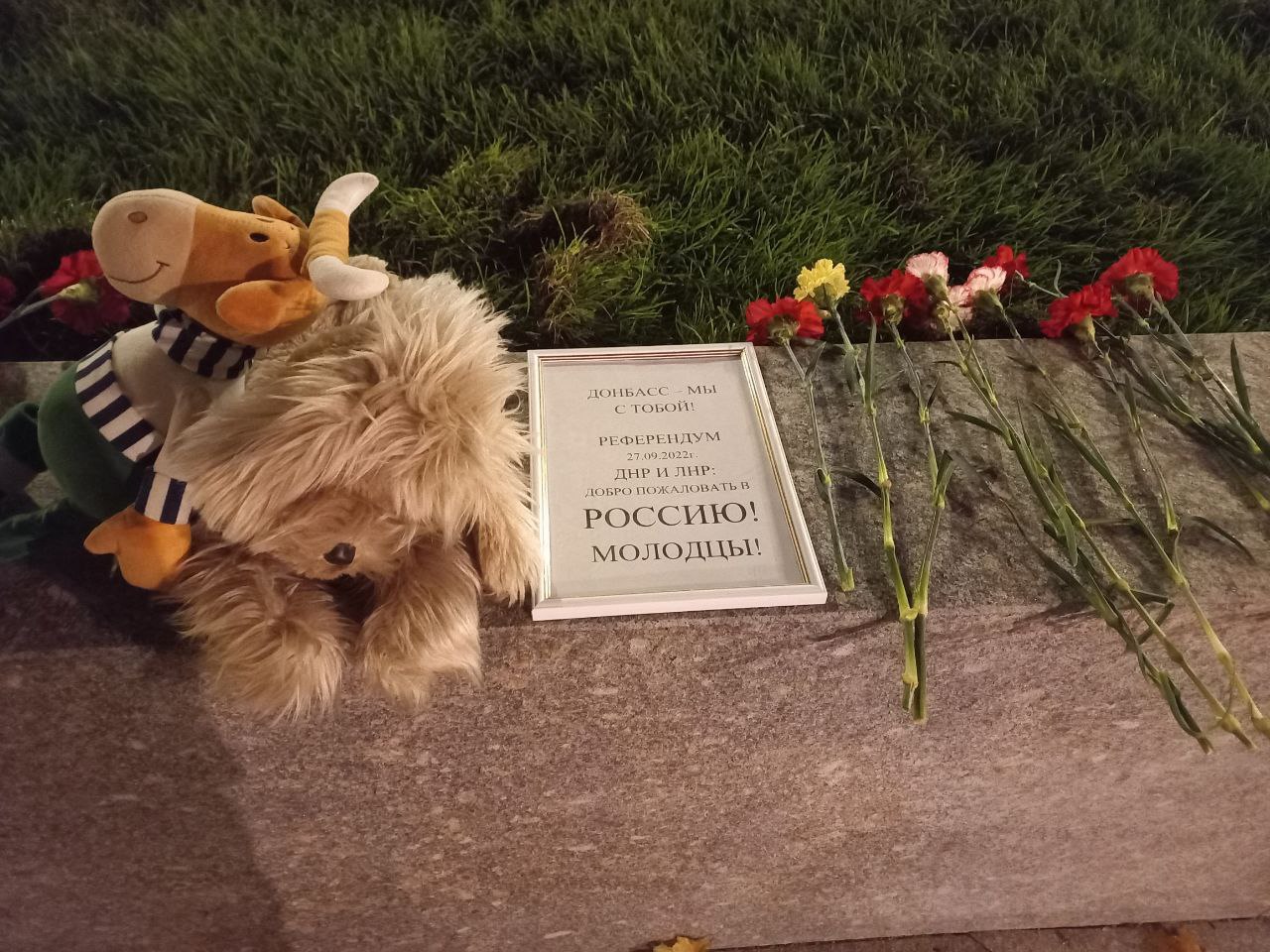 После оглашения первых результатов народного волеизъявления в этих землях Новороссии на Площади Донецкой Народной Республики в Москве перед посольством США собрались члены Союза писателей России, участники клубов СЛОВОРОССИЯ И СОТЫ, в том числе из республик Донбасса. Среди них Анастасия Чернова, Ольга Блюмина, Руслан Кошкин, Алексей Полубота, Людмила Семёнова, Александра Потёмкина. Большинство собравшихся оказывали посильную поддержку ДНР и ЛНР в последние 8 лет, не раз выступали в библиотеках и домах культуры прифронтовых городов, собирали и привозили гуманитарную помощь, писали репортажи, рассказы, стихотворения о трагедии русских республик. Поэтому справедлива прозвучавшая цитата поэта Григория Шувалова: «Этот день мы приближали, как могли». По словам литературоведа из Луганска Андрея Чернова, который в самые тяжёлые дни 2014 года оставался в родном городе, за время Донбасской войны уже выросли дети, которые не помнят, когда на их земле были мир, а некоторые так и не смогли вырасти. Счёт погибшим в ЛНР детям от рук укрокарателей был положен в теперь уже далёком июле 2014 года после бомбардировки станицы Луганской украинской авиацией. «С результатами Референдумов на Донбассе связывают надежды на скорейшую Победу и заслуженное наказание для тех, кто спровоцировал эту войну, в том числе сидящих сейчас вот за этим забором посольства США», - сказал Андрей.