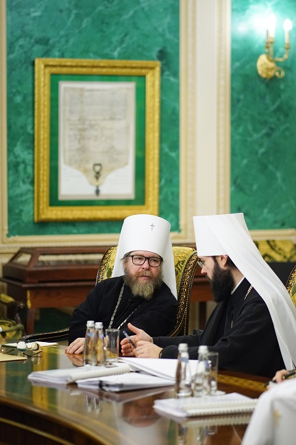 Сегодня в Патриаршей и Синодальной резиденции в Даниловом ставропигиальном монастыре в Москве Святейший Патриарх Московский и всея Руси Кирилл возглавил работу очередного заседания Священного Синода Русской Православной Церкви, сообщает Патриархия.ru.