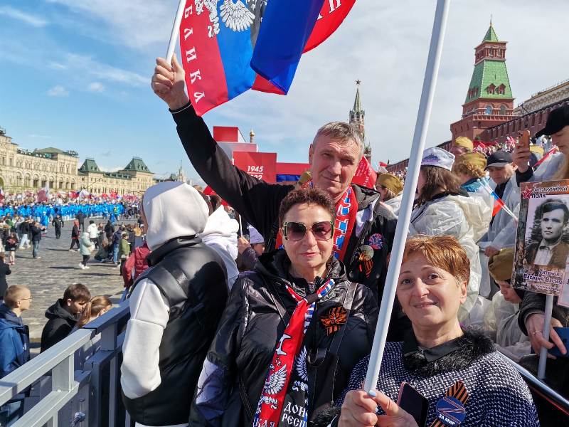 Потом были роскошные фотки 2022 года с Красной площади, где он с флагом Донбасса и в компании с китаянкой, которая призналась Саше и Ко в любви к России, и, в частности, к Путину.