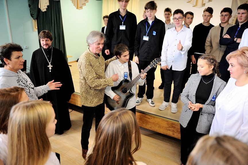 Встреча, организованная Председателем Ассамблеи народов Сахалинской области Майей Владимировной Кирилловой, также включала концертную программу, подготовленную нашим московским гостем. Он исполнял песни собственного сочинения на стихи русских поэтов "золотого" и "серебряного века". Темой его выступления стала духовная связь между поэтом А.С.Пушкиным и святителем Иннокентием. Вроде бы совершенно разные люди, но они жили в одну эпоху и у них был один духовный наставник – митрополит Московский и Коломенский святитель Филарет (Дроздов).