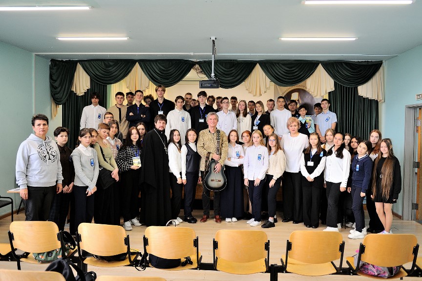 «В этом месяце мы пригласили на Сахалин известного российского композитора и исполнителя Владимира Всеволодовича Щукина, который также принял участие в нашей поездке на Курилы. До этого в Южно-Сахалинске с участием нашего гостя состоялась встреча со студентами политехнического колледжа Сахалинского Государственного университета. Участникам встречи мы рассказали о том, что сейчас проводится творческий конкурс для молодежи 14-18 лет. Каждый желающий – старшеклассник, учащийся колледжа, техникума или ВУЗа, может написать эссе посвященное жизни и трудам первого епископа Камчатки, Курил, Сахалина и Приамурья, его роли в освоении Дальнего Востока и Русской Америки. Подробности можно узнать по телефону: 26-14-96, а также ознакомившись с Положением о конкурсе. Работы принимаются до 20 ноября, а в конце месяца будут подведены итоги и названы победители. Всех участников тоже обязательно отметим.