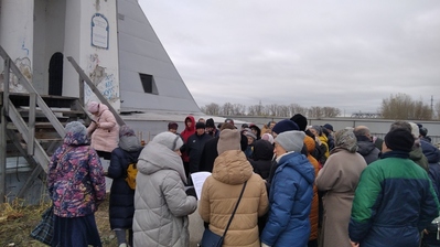 После богослужения и содержательной проповеди настоятеля верующие прошли крестным ходом вокруг храма. Желающие могли зайти внутрь храма, в котором установлены строительные леса, видны начатые ещё более 5 лет назад росписи.