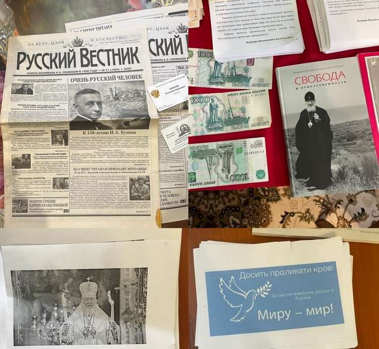 И вот главное «достижение» нападения СБУ на монастыри. Нашли «подозрительных», которые показывали силовикам паспорта и военные билеты СССР, а также не имели документов. И, о, ужас, нашли «пророссийскую литературу». Как пишет издание «Столица С», большинство литературы, которую нашли в ходе обысков, отпечатана на русском языке. Уже – крамола. Более того, в числе улик есть газета «Русский Вестник», точнее – несколько выпусков газеты «Русский Вестник», один из которых № 21 за 2020 год, что видно из фото. В числе улик также журнал «Русский дом» 2014 года издания.