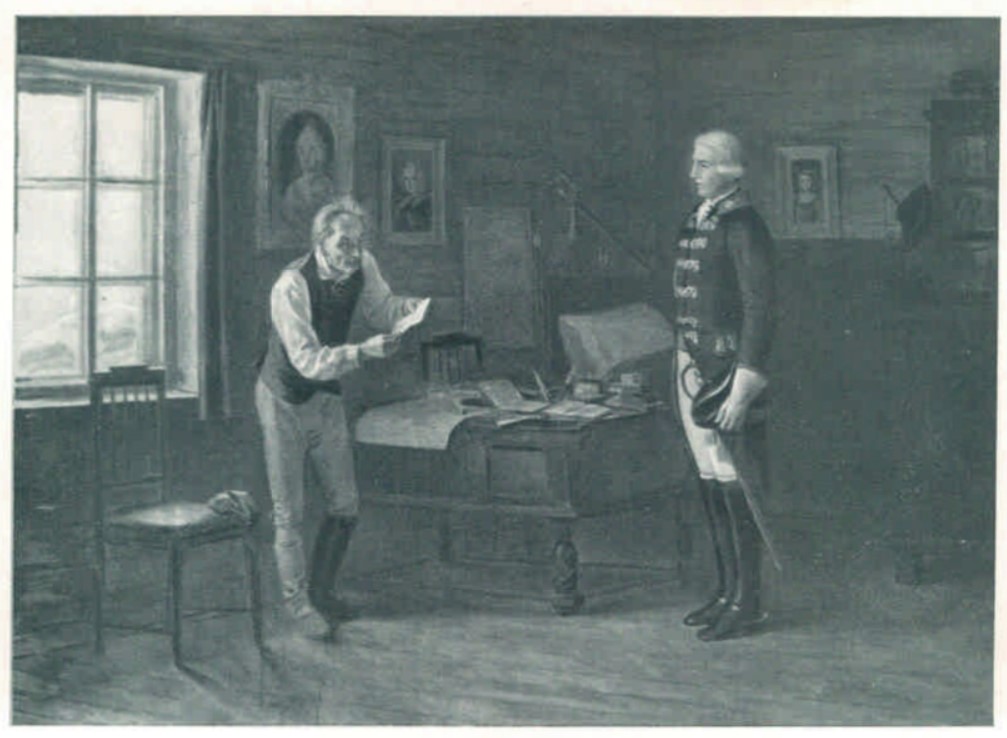 Курьер Павла Первого вручает Суворову приказ о назначении его командующим итальянской армией в 1799 году.