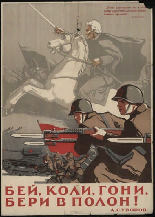 Плакат: «Бей, коли, гони, бери в полон! А. Суворов». Художник В. Иванов, 1942 г.