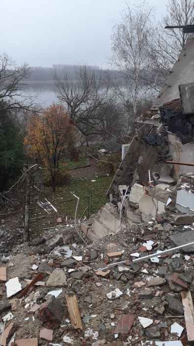 Лития над братской могилой. Когда вы увидели, разрушенный от снарядов трёхэтажный госпиталь, который стоит на самом берегу Днепра, хорошо просматривается и простреливается с правой стороны и там ещё осталась неразобранной братская могила, засыпанных разбитым кирпичом и бетоном, погибших воинов, возникло внутреннее волнение.