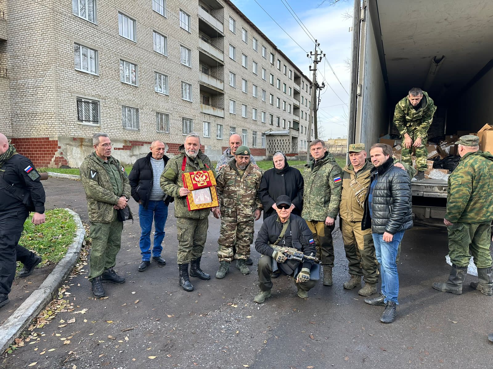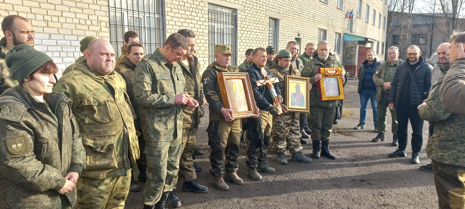 Встречавшие нас командование и воины бригады были очень довольны. Наша миссия, помимо прочего, еще привезла святыни – храмовые иконы и подарочные иконки, нательные крестики, книги, пояски «Живый в помощи». У всех было праздничное настроение. Затем провели построение, послушали краткое слово-обращение федерального начальника, отец Макарий отслужил молебен. Во время молебна было два интересных знака. Сначала пролетел клин диких гусей, улетающих на юг, а потом низко на небольшой высоте прошли два наших истребителя. Это, наверное, Господь нам показал, что настало время «провожать» «диких гусей» – чужеземных наёмников, лезущих со всех сторон на наши исконно русские земли.
